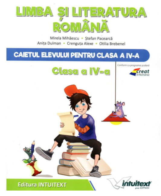 Caietul elevului pentru clasa a IV-a cuprinde o colecție de fișe de învățare al căror conținut respectă ordinea lecțiilor din manualul editurii INTUITEXT. De asemenea, cadrele didactice vor descoperi aici și pagini destinate evaluării inițiale, recapitulării și evaluării la finalul unităților de învățare, recapitulării și evaluării finale, pregătirii pentru evaluarea națională, sarcini de învățare atractive, cu grade diferite de dificultate.