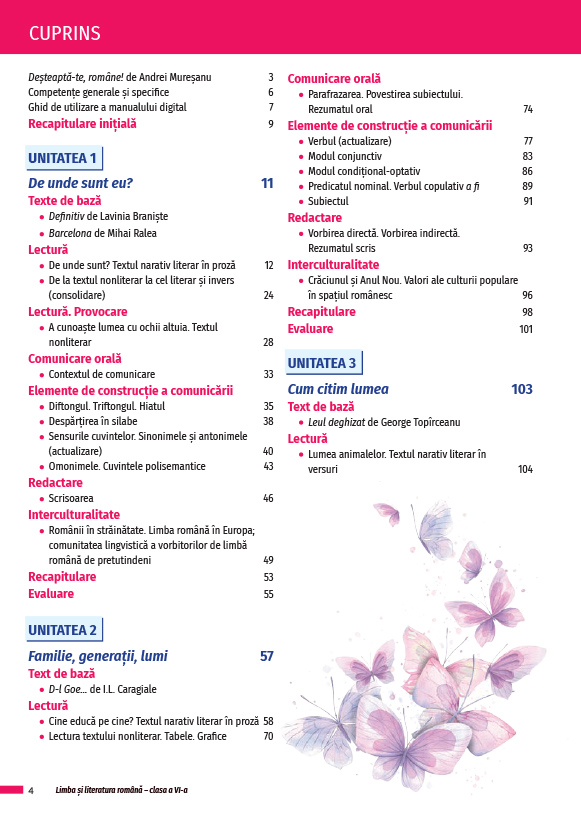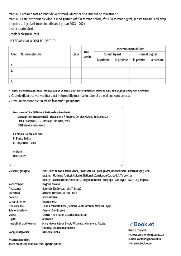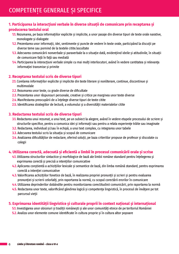 Manualul de Limba și literatura română: clasa a VI-a este realizat în conformitate cu Programa școlară aprobată prin Ordinul ministrului educației naționale nr. 3393/28.02.2017 și propune o viziune avizată și proaspătă a predării disciplinei, prin: