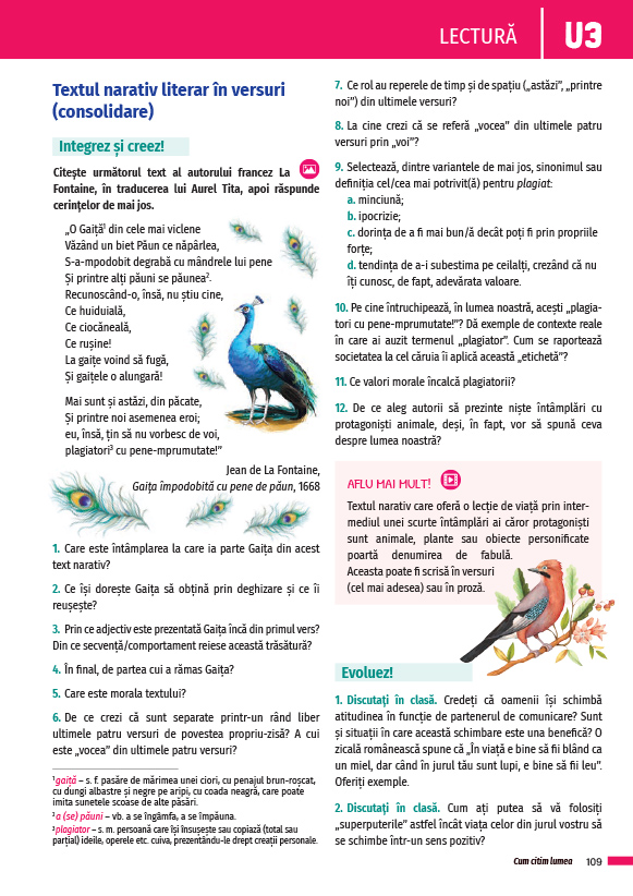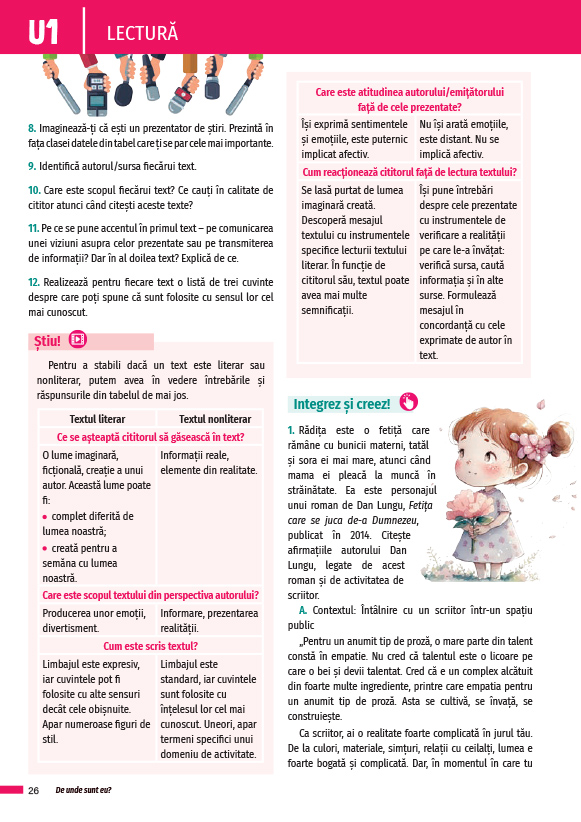- deschideri culturale și interdisciplinare (marcate în Ghidul profesorului);