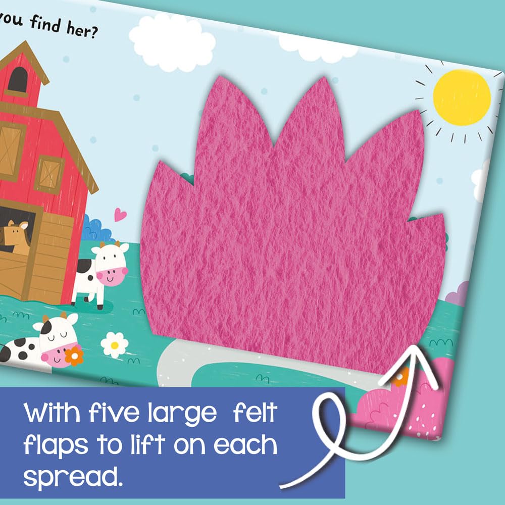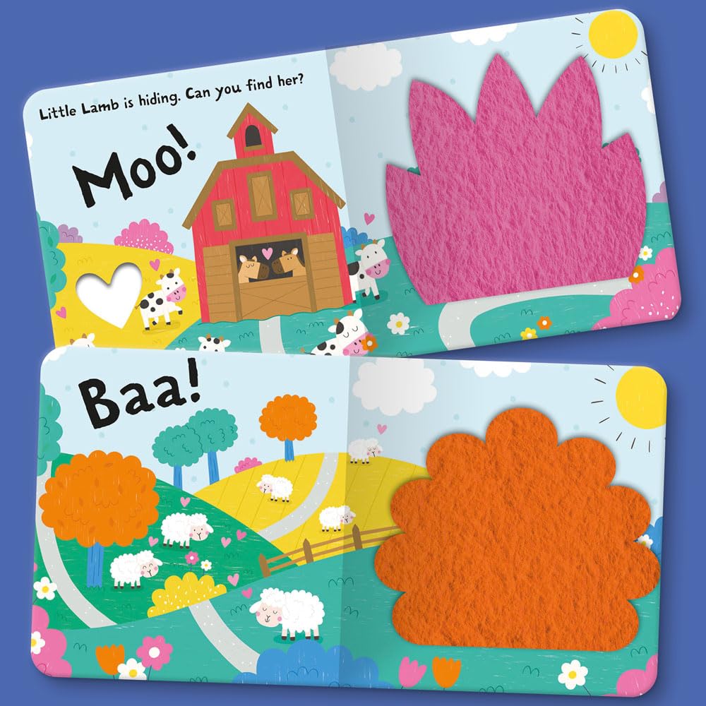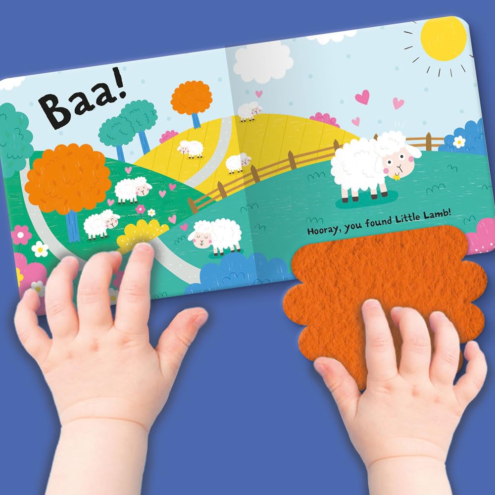Where is Little Lamb? Lift and look under each large felt flap to see who is hiding!