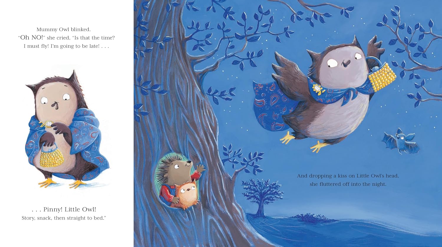 Little Owl does NOT want a babysitter . he's not a baby and he certainly doesn't want to be sat on! When Pinny the babysitter arrives, Little Owl wants a long bedtime story and a hot chocolate with forty marshmallows - and he mustn't forget to say goodnight to ALL his toys, about a millionty billion of them!