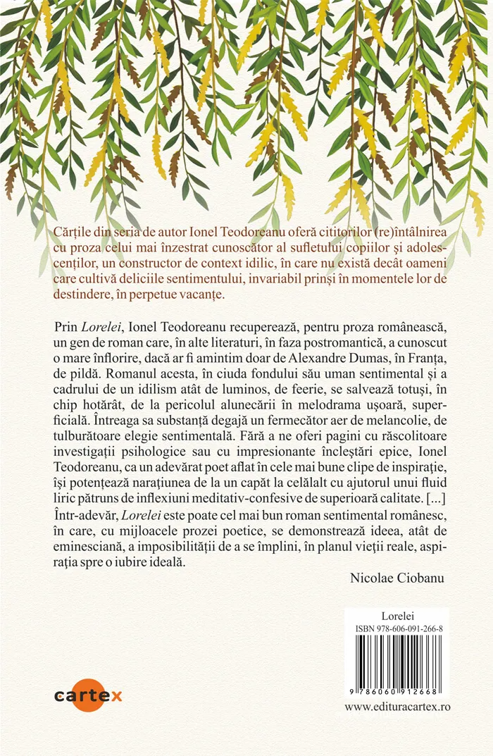 Roman cu un vadit substrat autobiografic, Lorelei este, in fond, o elegie pentru esecul cuplului si totodata un omagiu (compensatoriu si probabil din aceasta pricina cam tezist) adus Stefanei Velisar Teodoreanu (mai putin autoarei, si mai mult sotiei ca principiu traditional de stabilitate).
