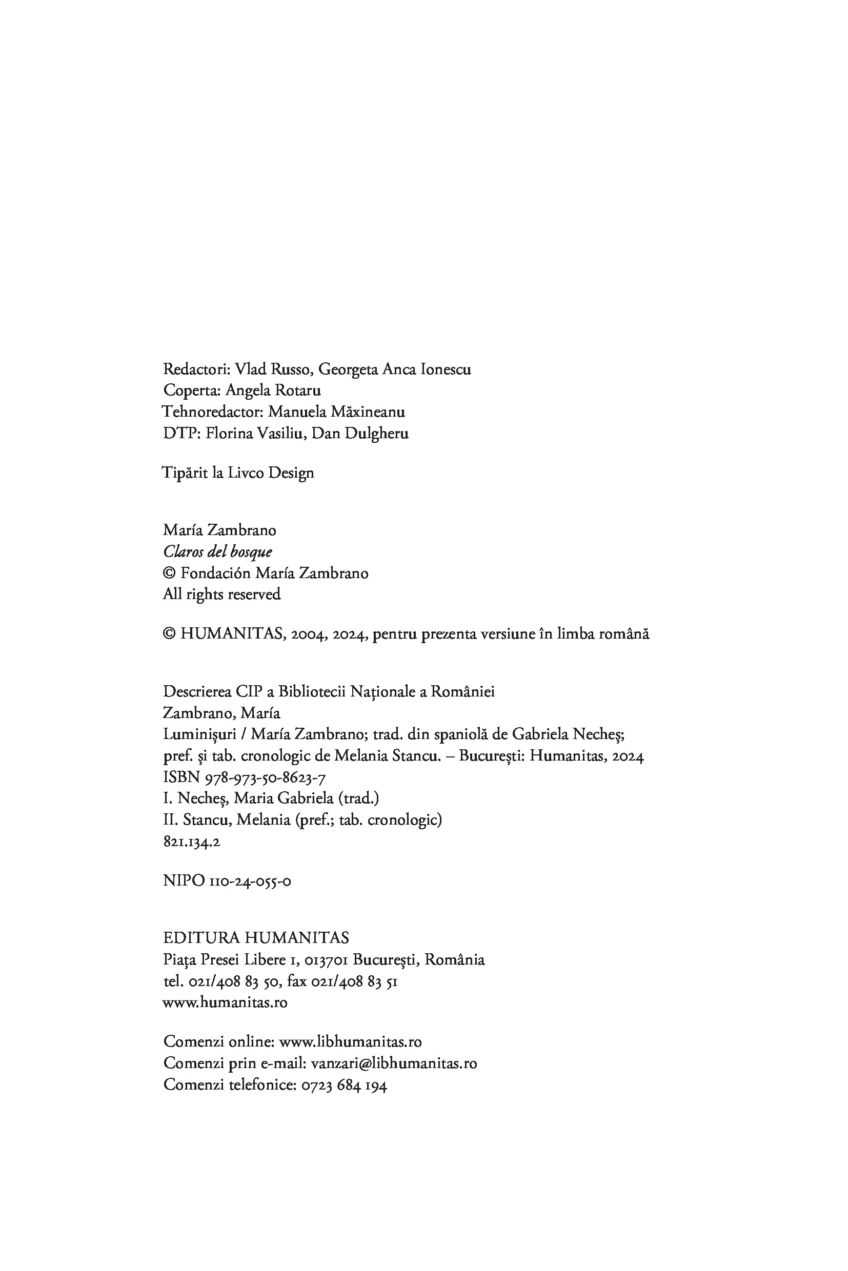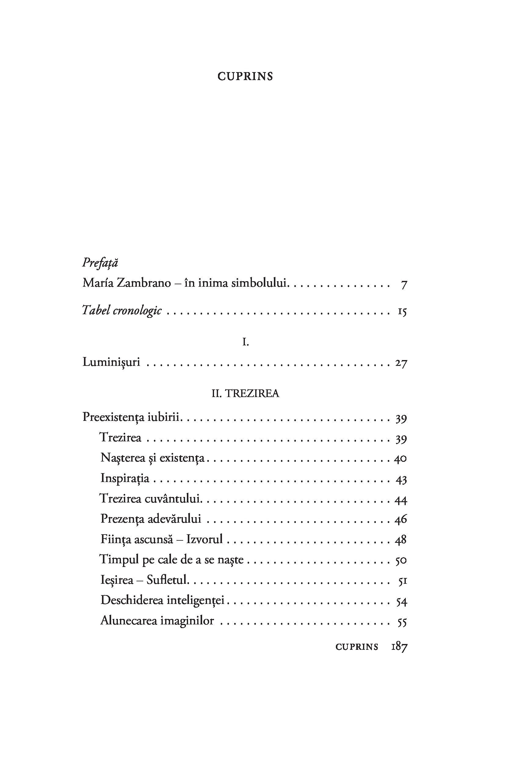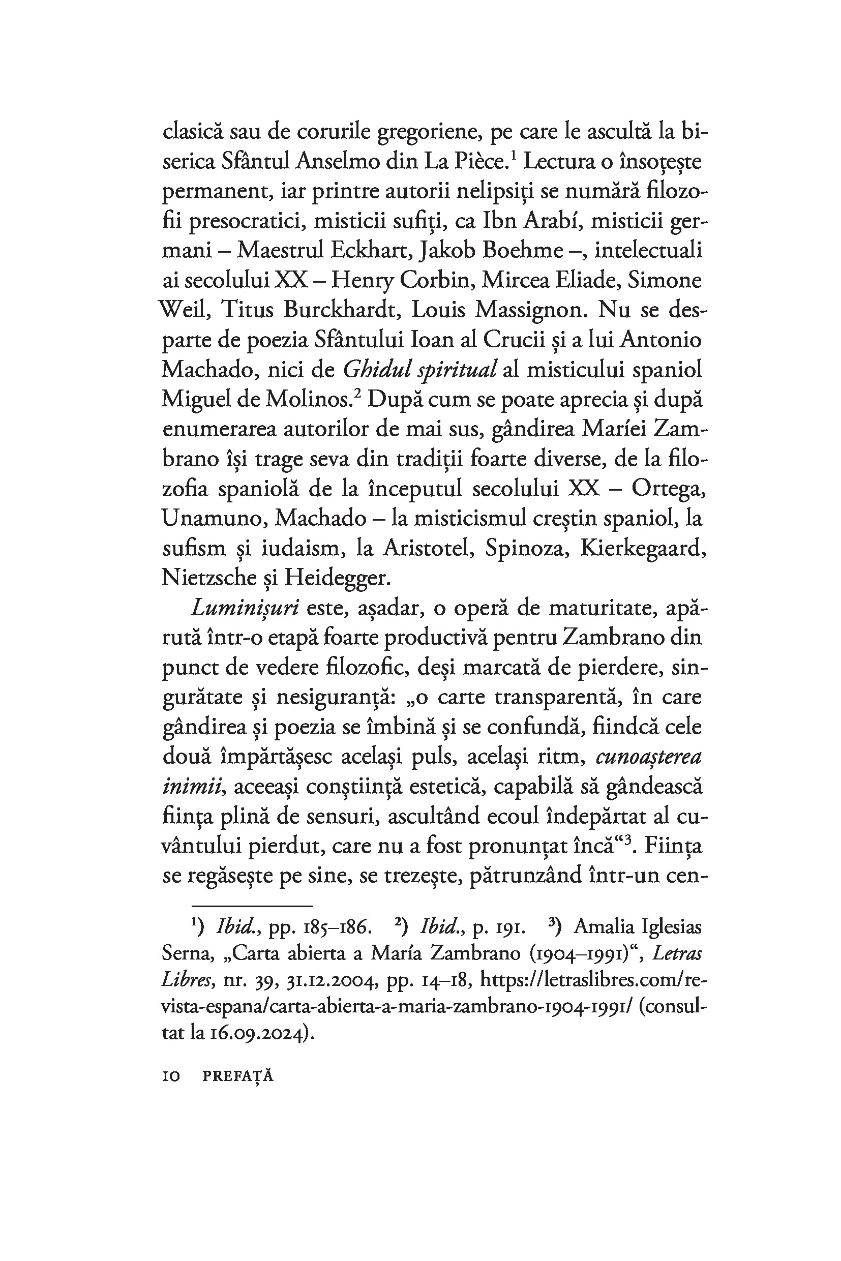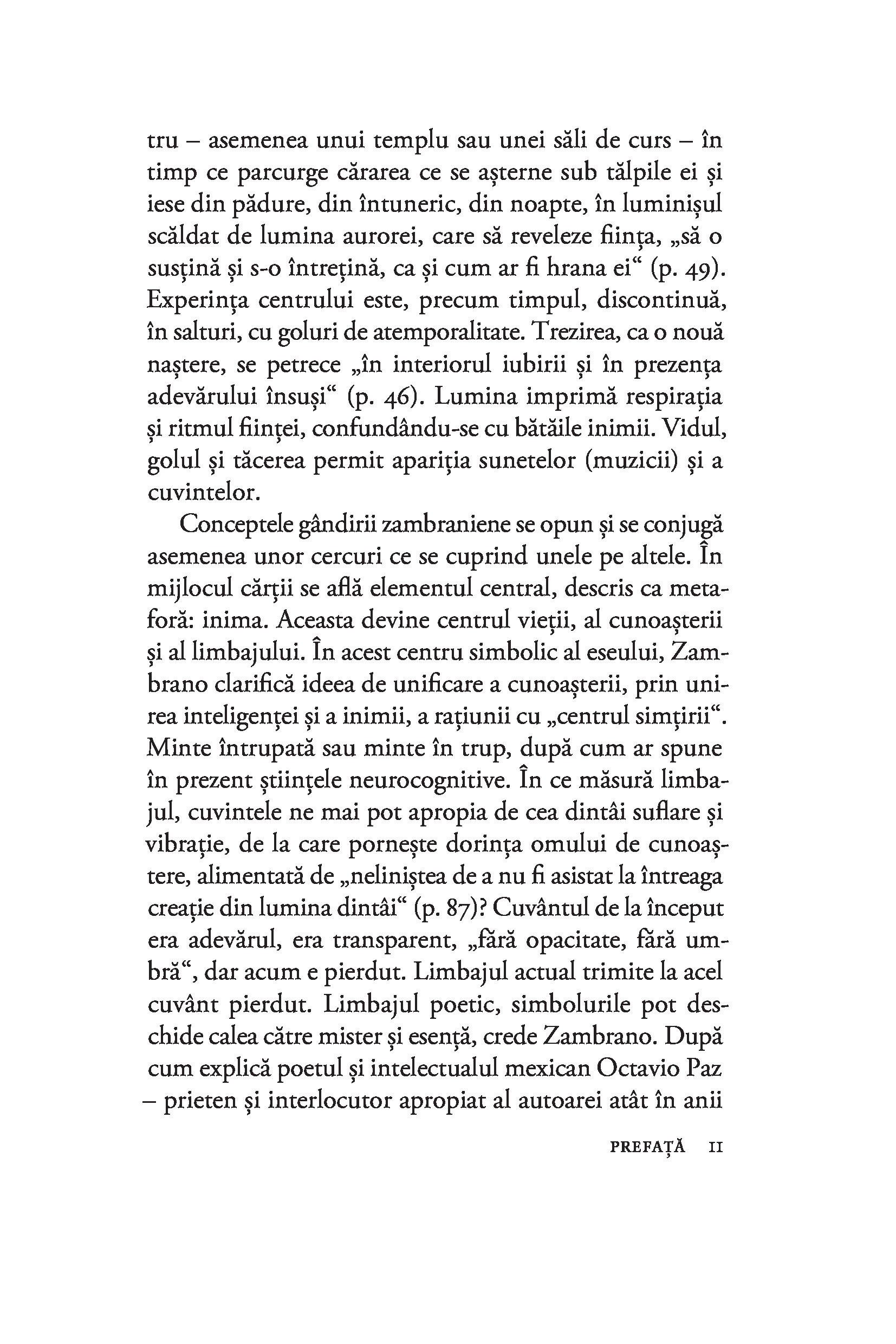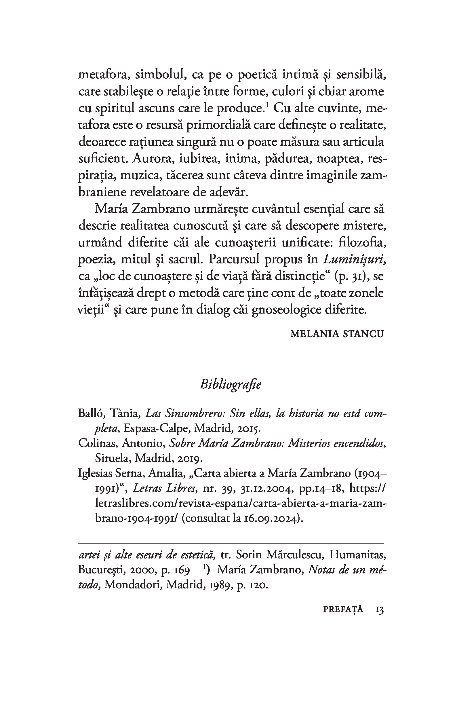Considerată cea mai importantă femeie filozof din Spania secolului XX și cea mai bună discipolă a lui José Ortega y Gasset, María Zambrano trezește admirația tinerilor de azi prin angajarea ei în problemele com­plexe ale societății moderne și prin pasiunea cu care gândirea ei filozofică se ancorează în «toate zonele vieţii», de la etică la spiritualitate, ecologism şi critică culturală.“ — MELANIA STANCU