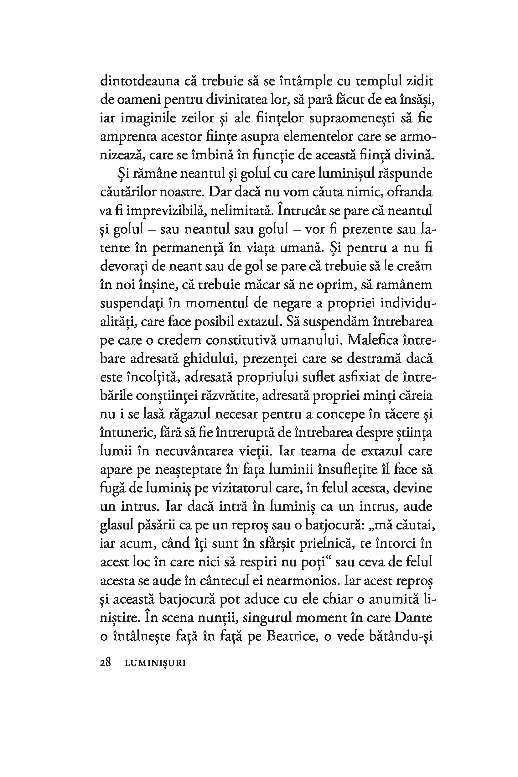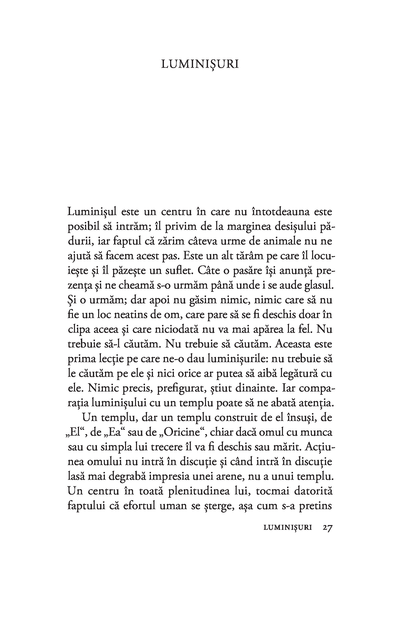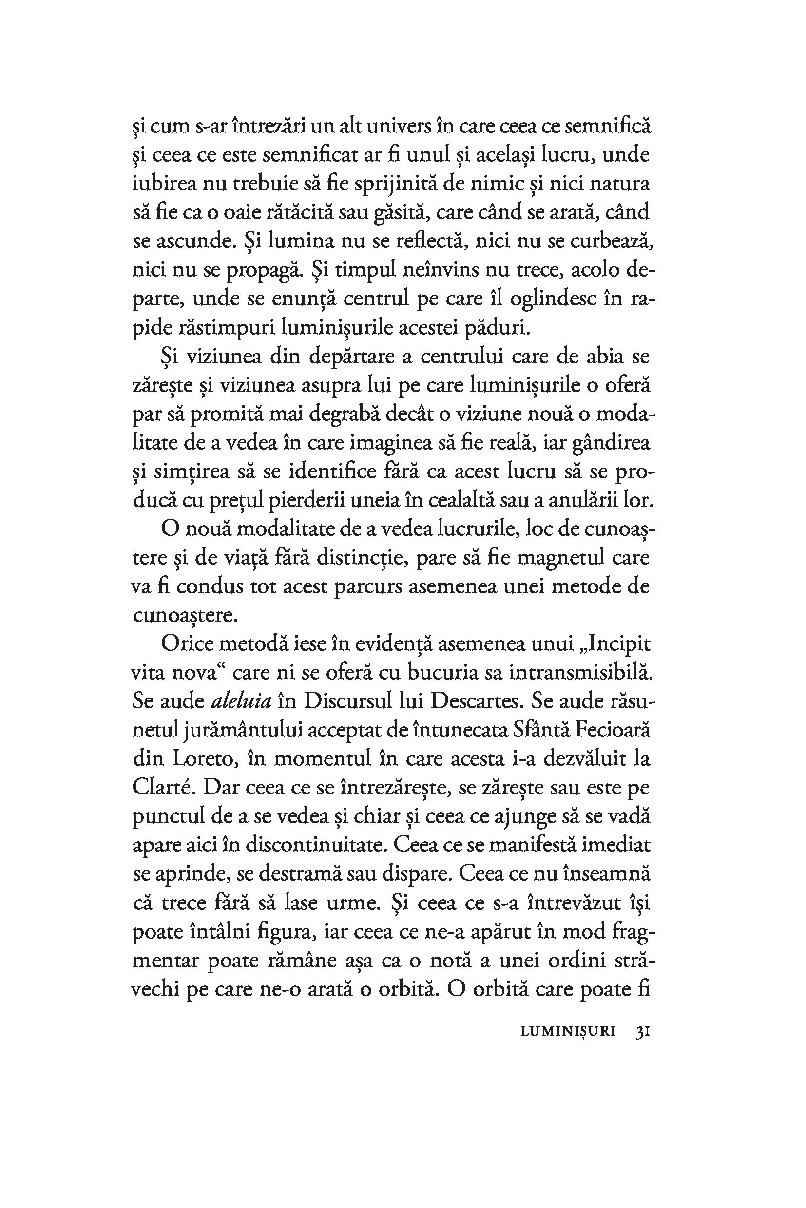 „Eseul Luminişuri este rodul unei perioade de adâncă meditație, în care María Zambrano merge către sine, către interiorul fiinţei, prin intermediul naturii pe care o contemplă în tăcere şi singurătate. Autoarea urmăreşte cuvântul esenţial, exprimat prin simboluri, care să descrie realitatea cunoscută şi să descopere mistere, urmând diferite căi ale cunoaşterii unificate: filozofia, poezia, mitul şi sacrul. Opera Maríei Zambrano interesează azi nu doar pentru dialogul pe care îl stabileşte cu marile figuri ale vieţii intelectuale şi academice spaniole din secolul trecut, ci şi pentru că vocea protagonistei este o voce feminină.