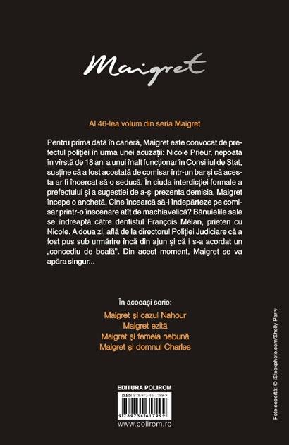 Pentru prima data in cariera, Maigret este convocat de prefectul politiei in urma unei acuzatii: Nicole Prieur, nepoata in virsta de 18 ani a unui inalt functionar in Consiliul de Stat, sustine ca a fost acostata de comisar intr-un bar si ca acesta ar fi incercat sa o seduca. In ciuda interdictiei formale a prefectului si a sugestiei de a-si prezenta demisia, Maigret incepe o ancheta. Cine incearca sa-l indeparteze pe comisar