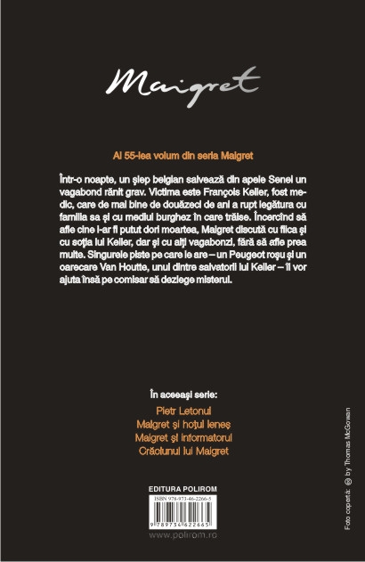 Intr-o noapte, un slep belgian salveaza din apele Senei un vagabond ranit grav. Victima este François Keller, fost medic, care de mai bine de douazeci de ani a rupt legatura cu familia sa si cu mediul burghez in care traise. Incercind sa afle cine i-ar fi putut dori moartea, Maigret discuta cu fiica si cu sotia lui Keller, dar si cu alti vagabonzi, fara sa afle prea multe. Singurele piste pe care le are – un Peugeot rosu si un oarecare Van Houtte, unul dintre salvatorii lui Keller – il vor ajuta insa pe comisar sa dezlege misterul.