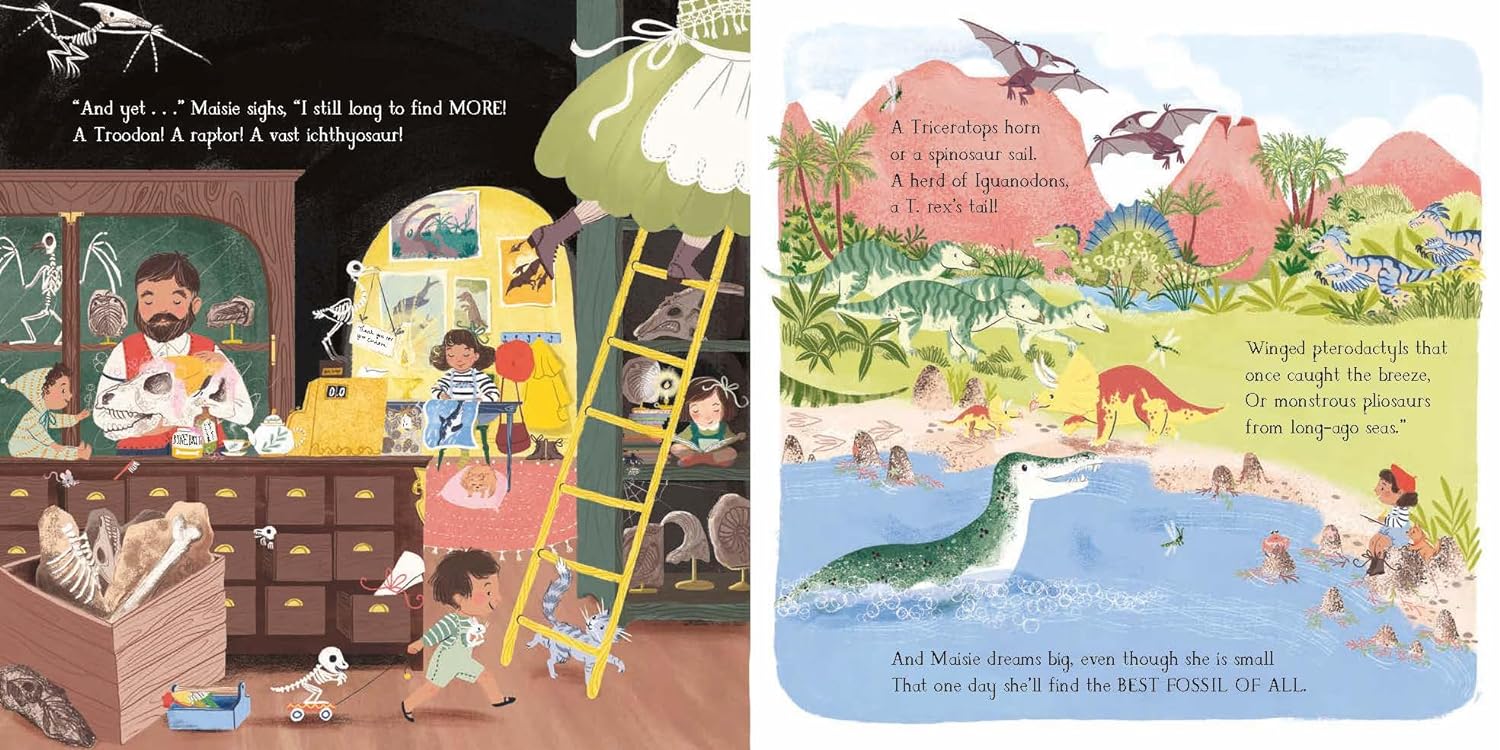 Inspired by the real-life story of paleontologist Mary Anning, and with a bonus page all about her discoveries at the back, Maisie Jones and the Dinosaur Bones is the perfect book for treasure hunters and big dreamers.