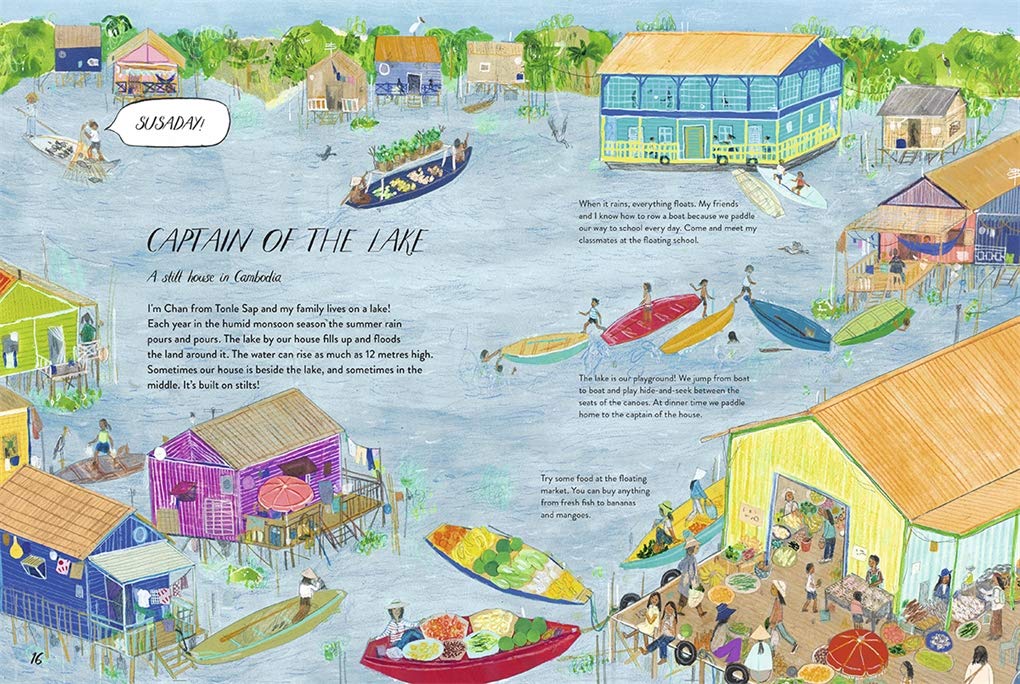 In Make Yourself at Home, young readers are introduced to ten extraordinary types of homes. Find out what it’s like to live underground or floating on a canal. Open up one of the two double gatefolds to see whether having hundreds of rooms in a castle is as exciting as it sounds, or whether a windmill is more your style. Any kind of house can be a home; learn about them all and choose your favorite!