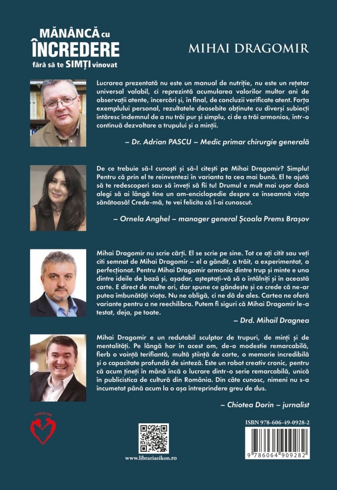 „Domnul profesor Mihai Dragomir a simțit nevoia să înfrumusețeze viața celor din jur, să transforme starea de sănătate cu adevărat într-o stare de bine bio-psiho-socială. Alimentația trebuie privită ca o armă aflată la îndemâna tuturor, un aliat important în asigurarea stării de bine biologic, de aici derivând celelalte atribute. Lucrarea prezentată nu este un manual de nutriție, nu este un rețetar universal valabil, ci reprezintă acumularea valorilor multor ani de observații atente, cercetări și, în final, de concluzii verificate atent. Important este că slăbirea este privită ca o readaptare a organismului la modul de viață personal, cu toate influențele colaterale. De multe ori, modul personal de nutriție face deosebirea între specimenul sălbatic, dominat de sclavia poftei, și individul cerebral care își clădește zi de zi sănătatea și își asigură o viață mai bună.”