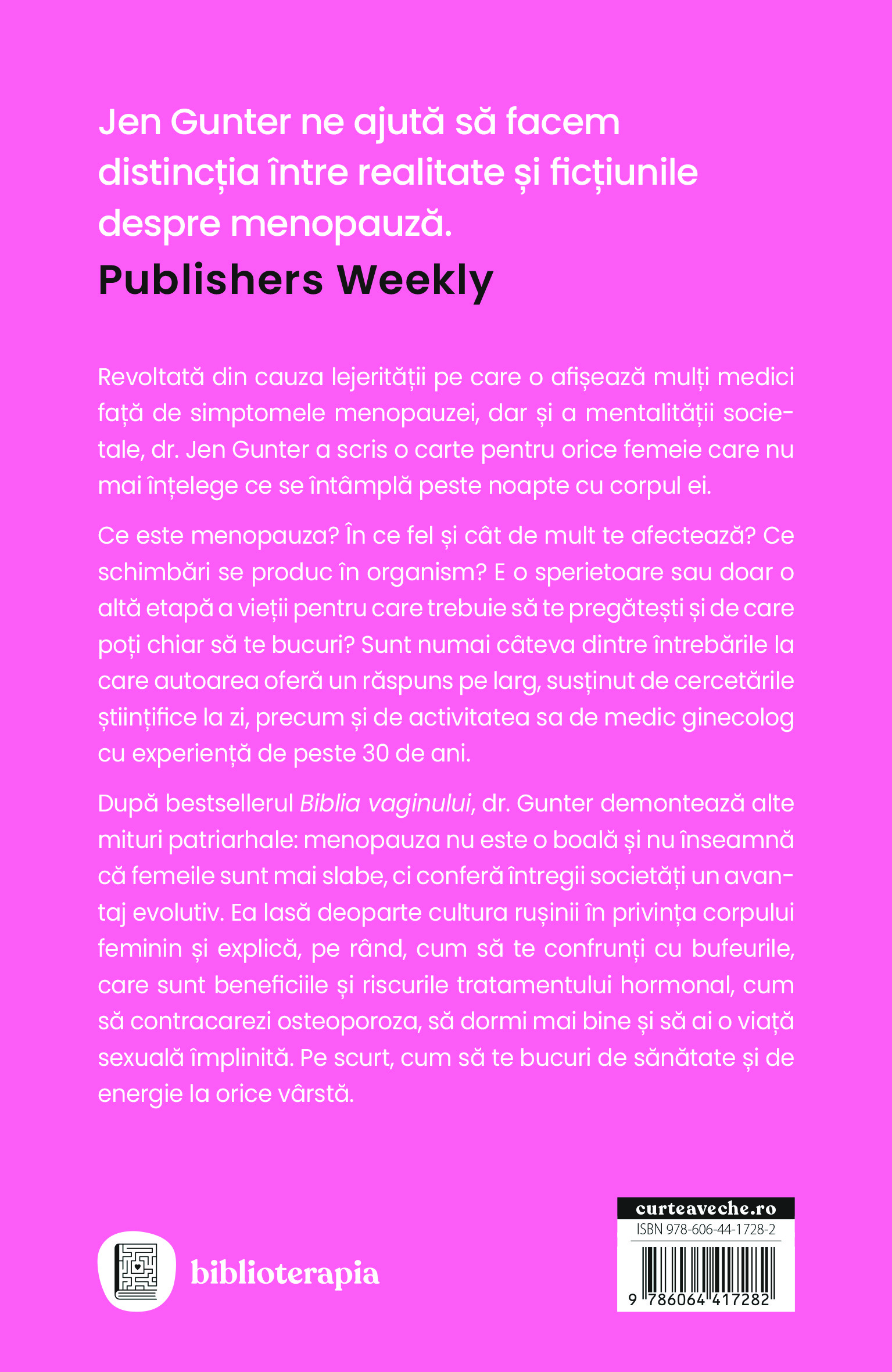 După bestsellerul Biblia vaginului, dr. Gunter demontează alte mituri patriarhale: menopauza nu este o boală și nu înseamnă că femeile sunt mai slabe, ci conferă întregii societăți un avantaj evolutiv.