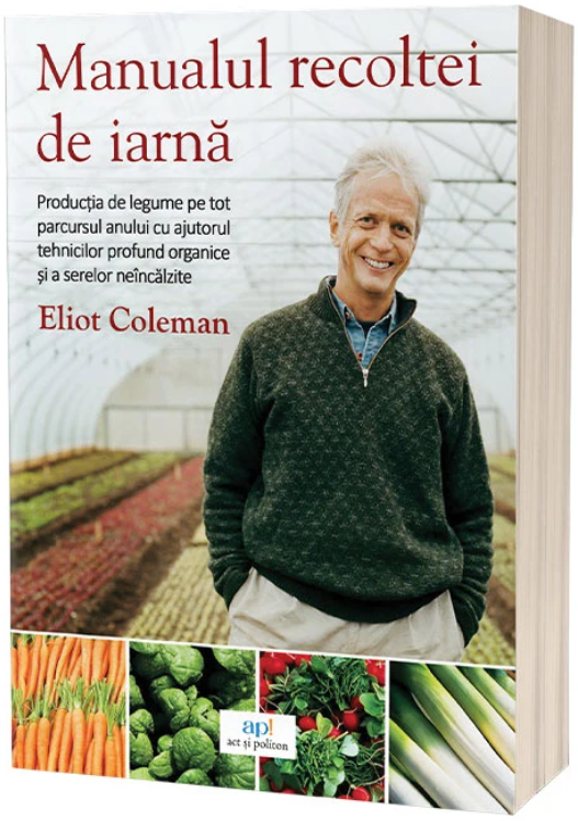 Manualul recoltei de iarnă: Producția de legume pe tot parcursul anului cu ajutorul tehnicilor profund organice și a serelor neîncălzite/ The Winter Harvest Handbook: Year Round Vegetable Production Using Deep-Organic Techniques and Unheated Greenhouses de Eliot Coleman este o carte utilă pentru toți agricultorii care vor să extindă sezonul agricol pe tot parcursul anului și să obțină profit și legume proaspete fără cheltuieli prea mari. Această carte vorbește despre culturile, uneltele, calendarele de plantare și tehnicile pe care autorul le folosește pentru a gestiona activitatea agricolă pe durata a patru sezoane. Volumul completează și actualizează informațiile despre recolta de iarnă din The New Organic Grower (Noul cultivator organic), o carte care va apărea în curând la Editura ap!.