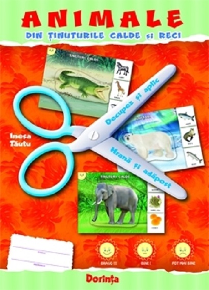 Observă animalul și hrana lui. Stabilește corespondețe între imaginea animalului și denumirea diferitelor părți ale corpului. Decupează animalul și timbrele care reprezintă hrana lui și lipește-le pe fișa a doua în locurile potrivite. Fișa a doua conține ilustrația cu locul unde trăiește animalul.