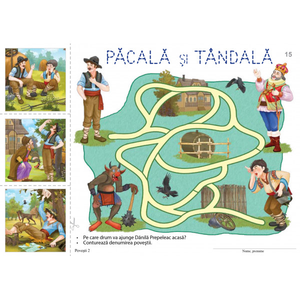 Mapa conține rezumatul poveștilor, iar pe verso: • se pot decupa secvențe din poveste • diferite jocuri distractive • jocuri de logică • jocuri de colorat • raspunde la întrebări ș.a.
