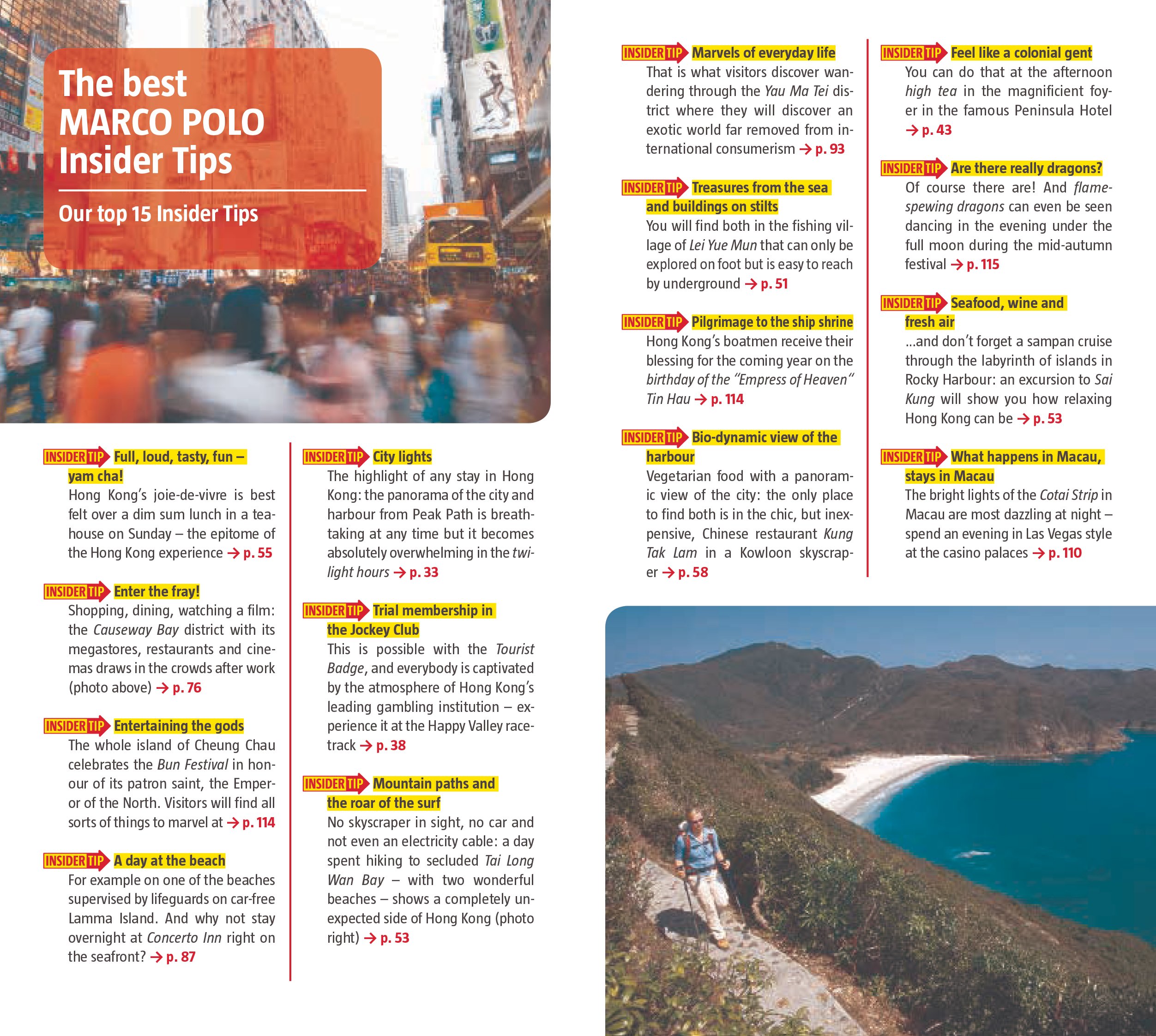 Trust Marco Polo Pocket Guide Hong Kong to show you around this fabulous city. The comprehensive coverage and unique insights will ensure you experience everything Hong Kong has to offer and more. The special tips, personal insights and unusual experiences will help you make the most of your trip - just arrive and enjoy.