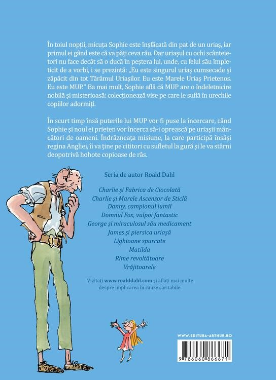 În scurt timp însă puterile lui MUP vor fi puse la încercare, când Sophie şi noul ei prieten vor încerca să-i oprească pe uriaşii mâncători de oameni. Îndrăzneaţa misiune, la care va participă însăşi regina Angliei, îi va ţine pe cititori cu sufletul la gură şi le va stârni deopotrivă hohote copioase de râs.