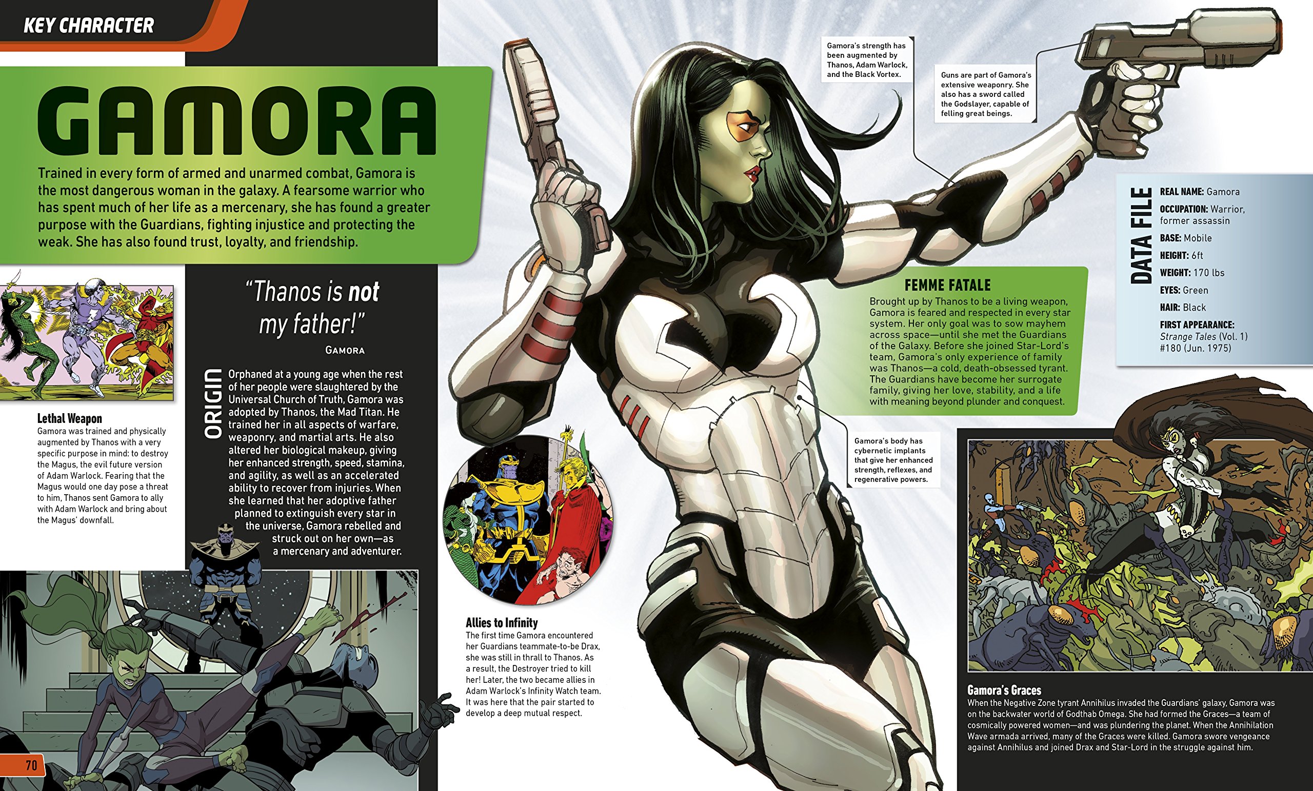 Packed with information on allies, like Captain America and The Thing, enemies, such as the Badoon and the Universal Church of Truth, locations, and much more, Marvel's Guardians of the Galaxy: The Ultimate Guide to the Cosmic Outlaws is a must-have for fans of Marvel comics.