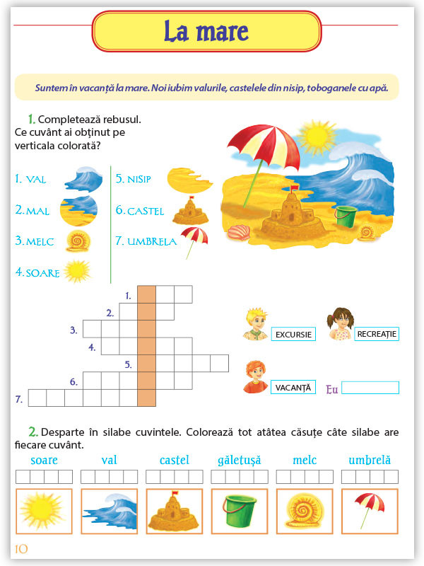 Caietul, prin cerințele lui, demonstrează copilului că toate cunoștințele acumulate trebuie folosite precum ingredientele unei prăjituri. Separat aceste cunoștințe-ingrediente nu înseamnă nimic, însă prin mixarea lor, lucrurile capătă o cu totul altă față, altă savoare și ne creează bucurie. Exerciţiile, însoţite de ilustraţii color, reprezintă o bogată resursă pentru activităţile specifice disciplinelor: comunicare în limba română, matematică şi explorarea mediului, dezvoltare personală, arte vizuale şi abilităţi practice. Astfel, copilul va fi stimulat să înveţe, să exerseze şi să recapituleze prin joc materia predată în acel an şcolar. Alături de el, în această călătorie de vacanţă, se vor afla trei prieteni – Mat, Ema şi Tică – care, acolo unde este necesar, vor participa la rezolvarea exerciţiilor propuse şi vor avea scris fiecare rezultatul obţinut. Copilul va putea completa şi el cu rezultatul său şi va putea observa dacă este asemănător cu vreunul din cele obţinute de Mat, Ema sau Tică.