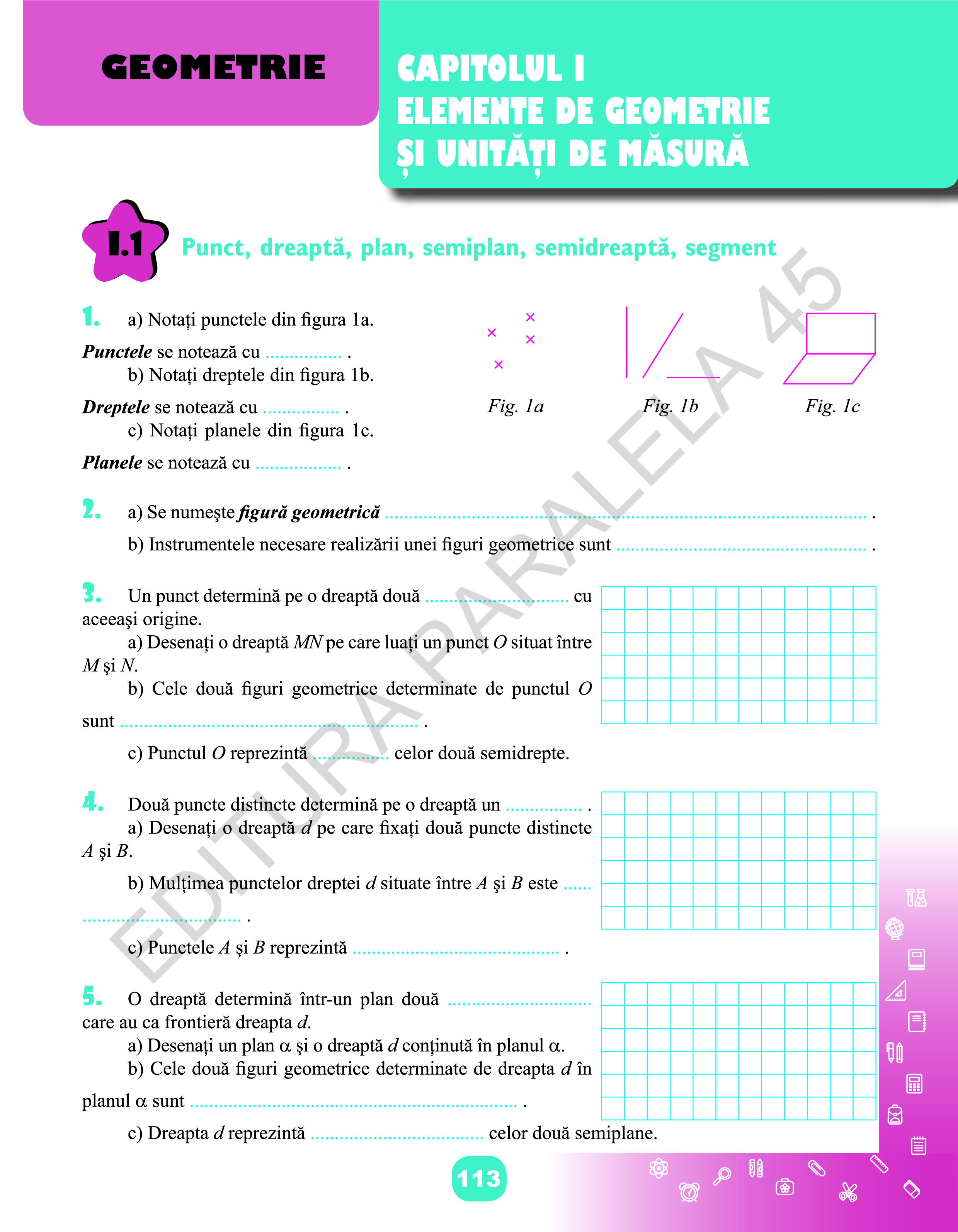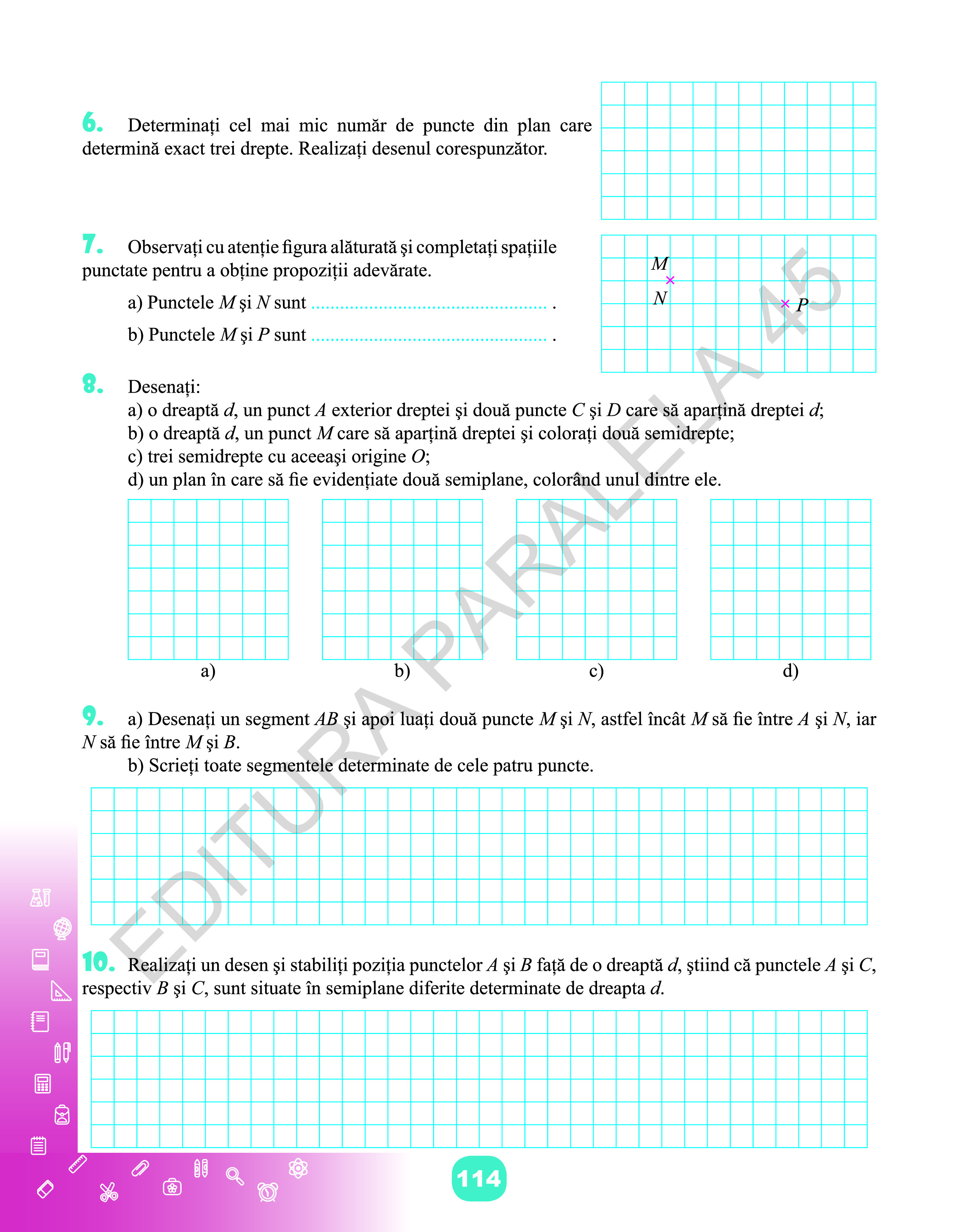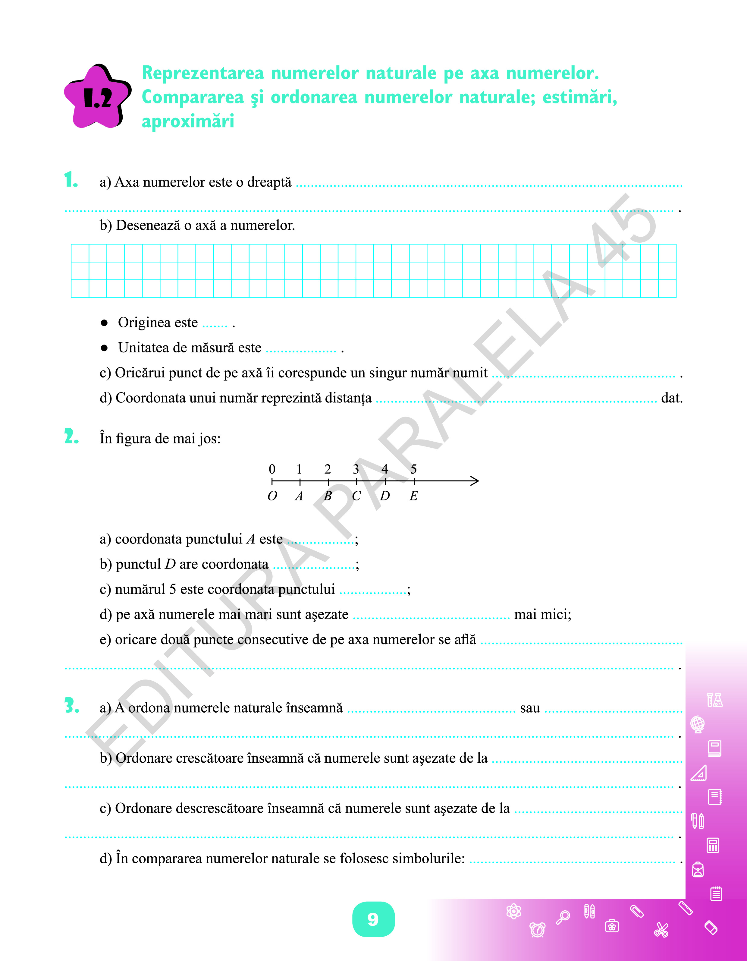 - activitățile de învățare (exercițiile și problemele) propuse sunt și ele minimale și alese cu multă grijă, unele cu conținut inter- și transdisciplinar, cu parcurgere ușoară, stimulativă și provocatoare.