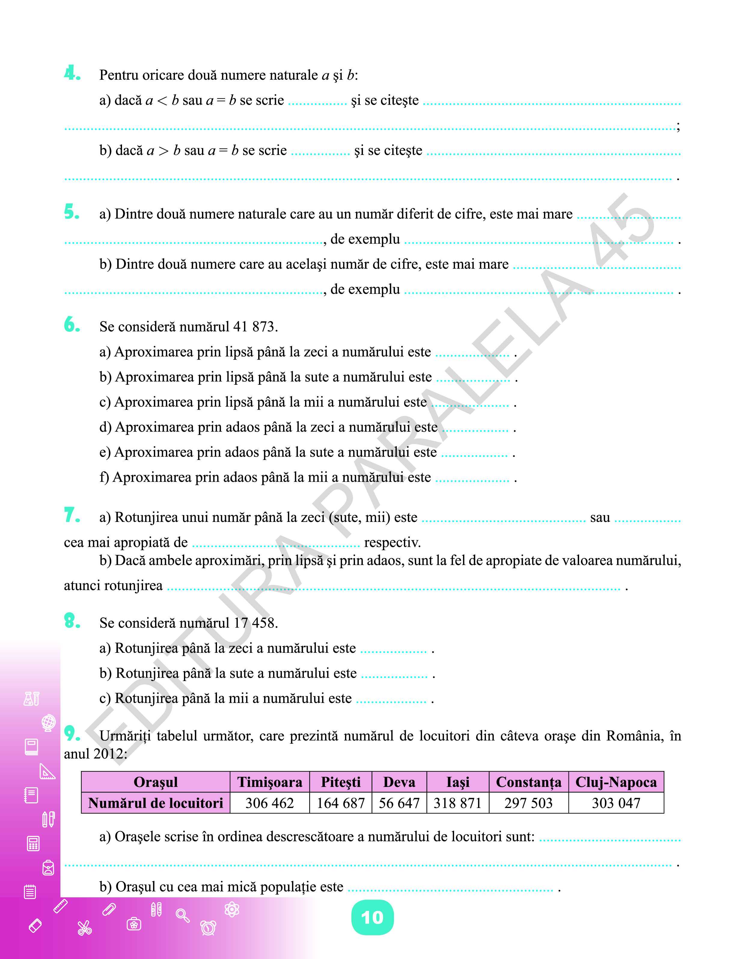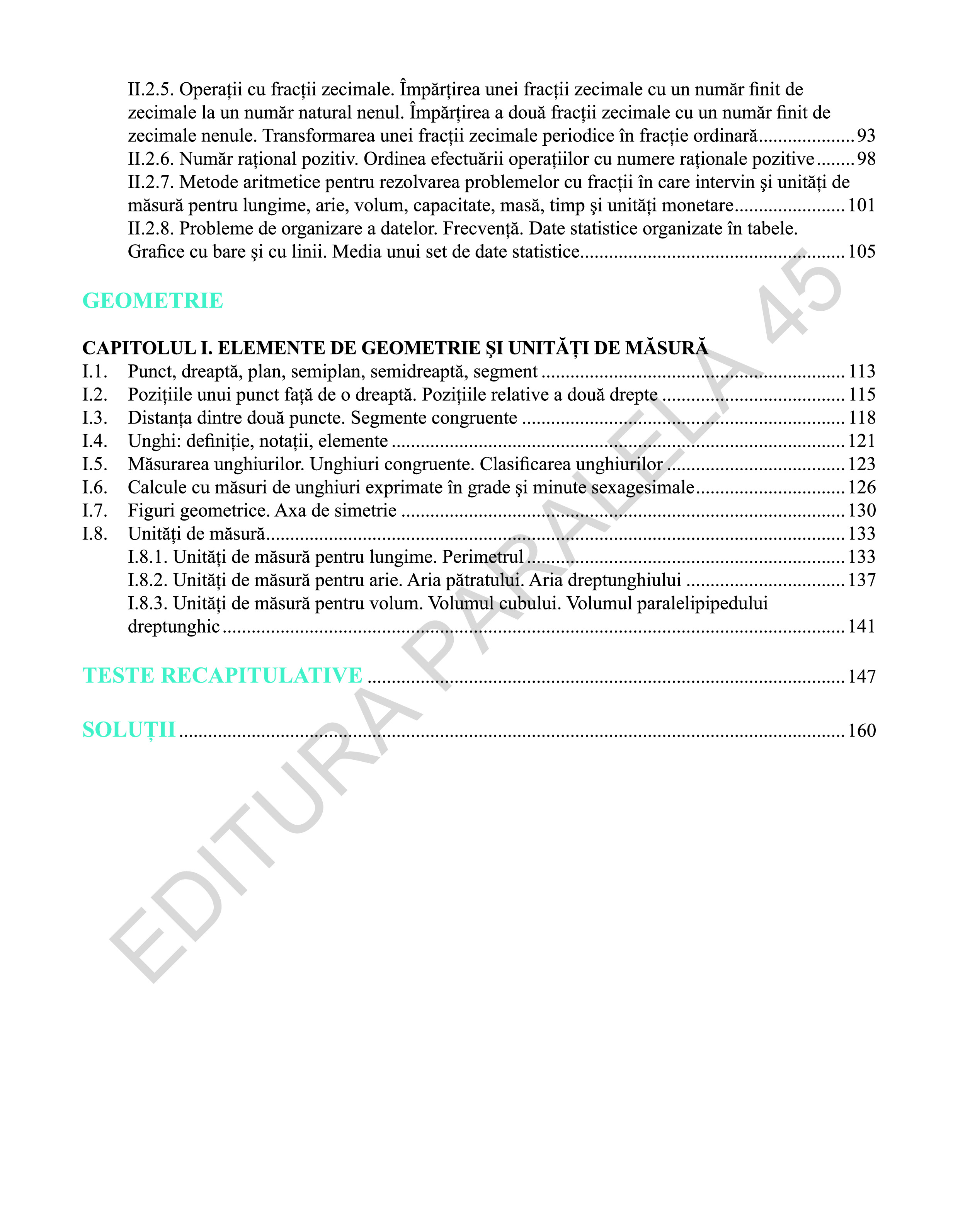 Culegerea poate fi folosită cu succes și de către profesor în activitatea de proiectare, organizare și desfășurare a lecțiilor matematice de o înaltă calitate.