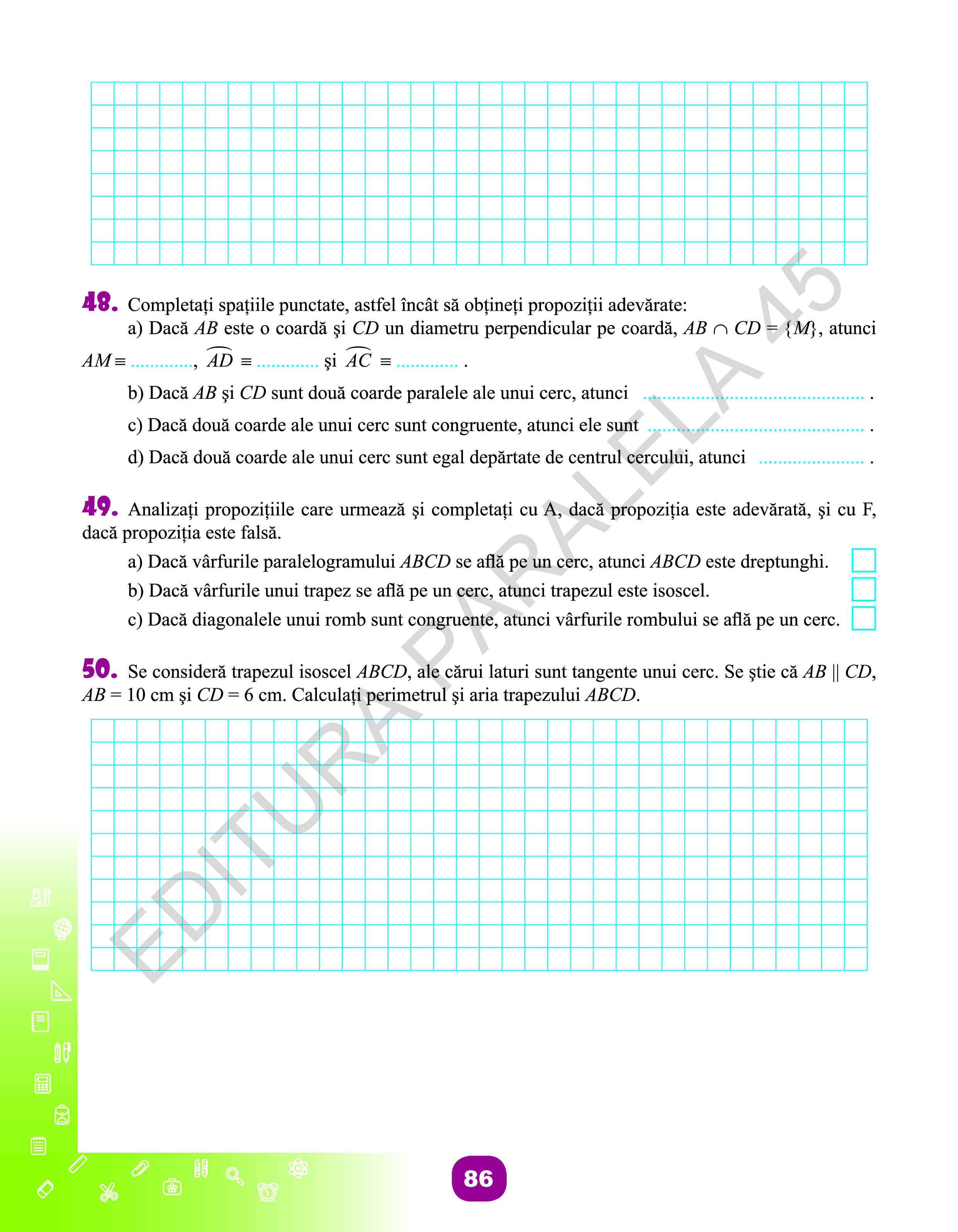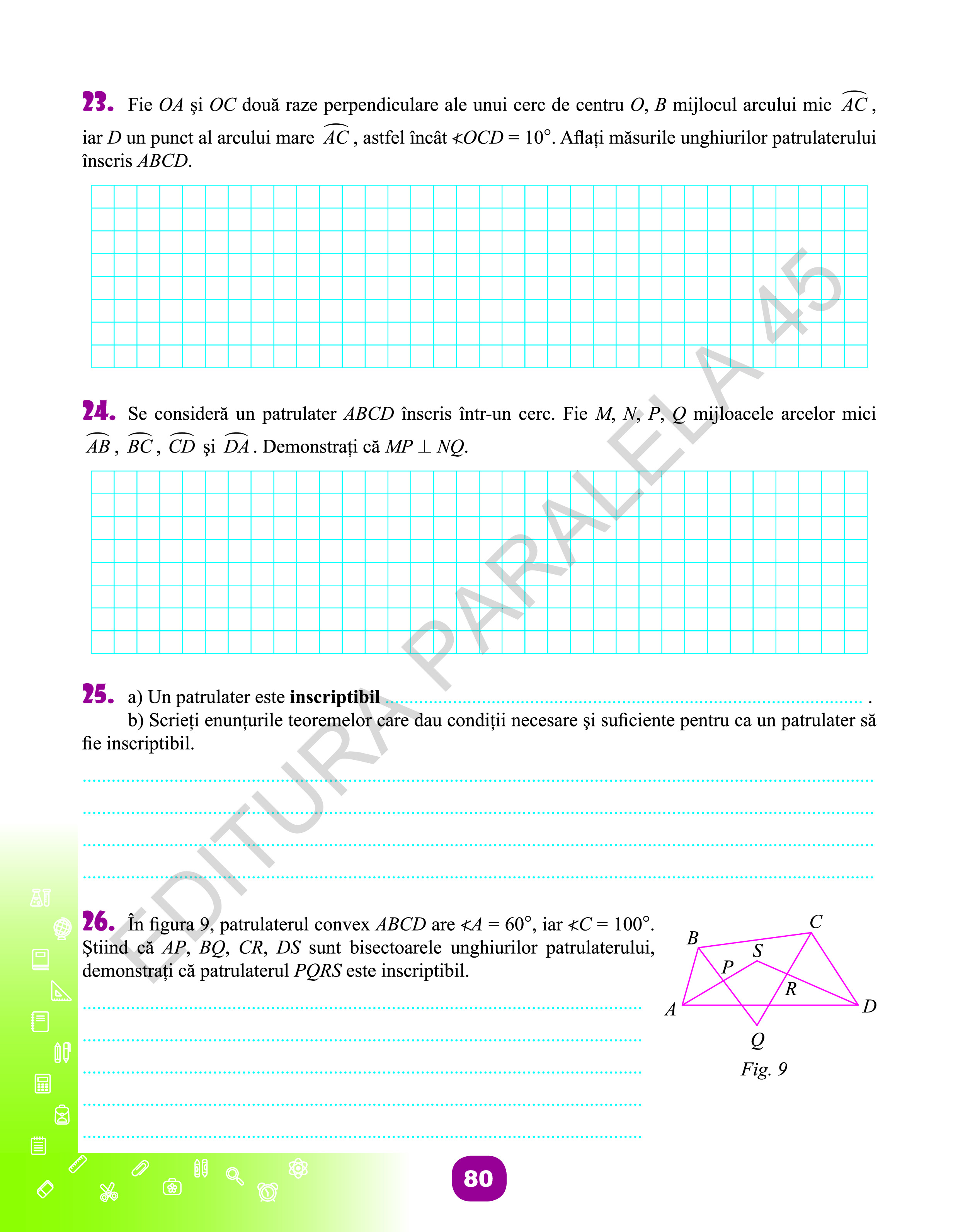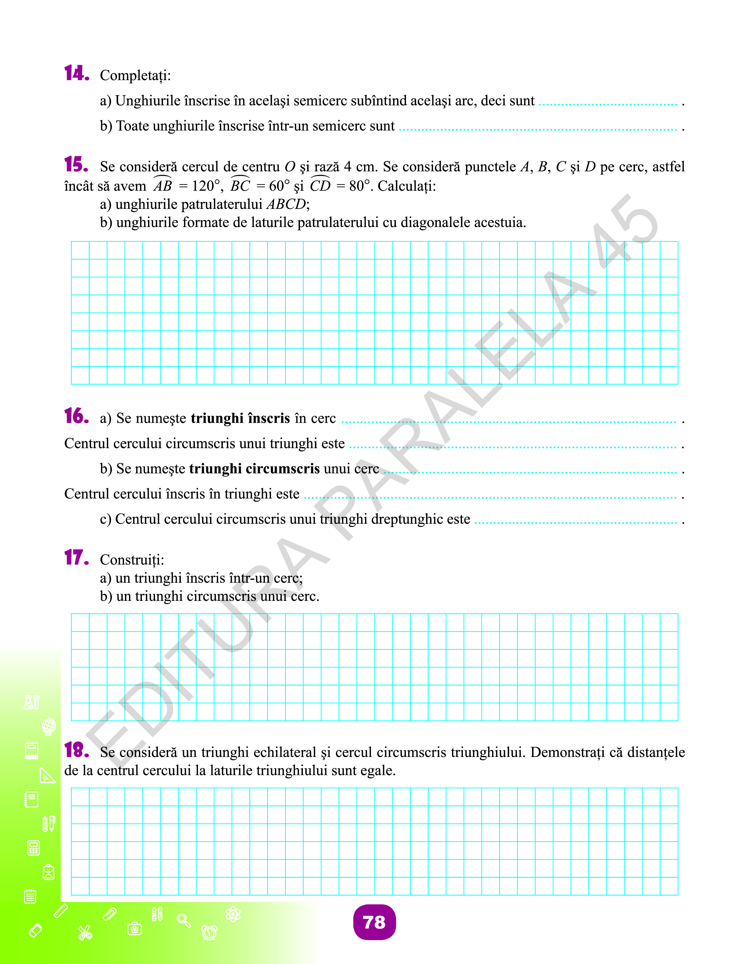 Culegerea poate fi folosită cu succes și de către profesor în activitatea de proiectare, organizare și desfășurare a lecțiilor matematice de o înaltă calitate.