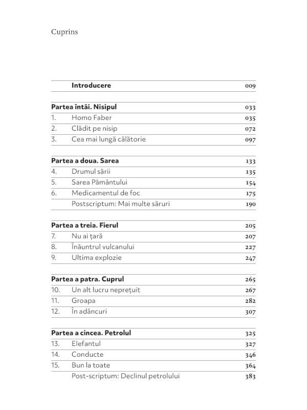 Nisipul, sarea, fierul, cuprul, uleiul și litiul. Fără ele, lumea noastră modernă nu ar exista, iar lupta pentru controlul lor ne va determina viitorul. Acestea sunt cele mai importante șase substanțe din istoria omenirii - au creat imperii, au distrus civilizații și ne-au hrănit inventivitatea și lăcomia timp de mii de ani. Ele ne alimentează computerele și telefoanele, ne construiesc casele și birourile și creează medicamente salvatoare.