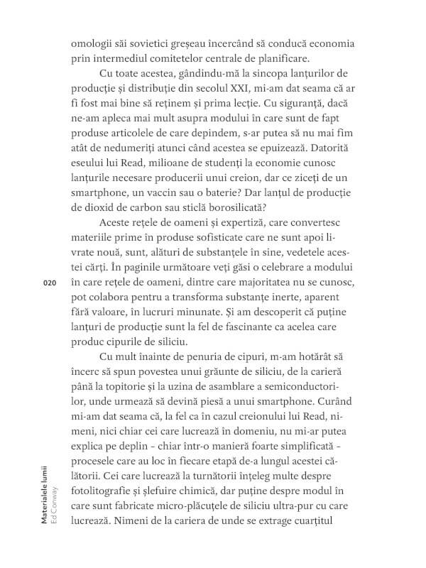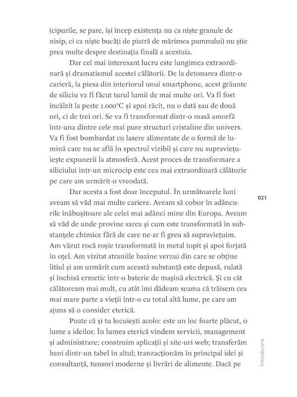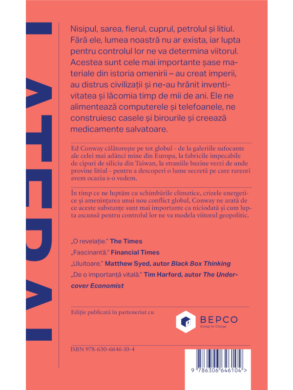 Ed Conway călătorește pe tot globul - de la galeriile sufocante ale celei mai adânci mine din Europa, la fabricile impecabile de cipuri de siliciu din Taiwan, la straniile bazine verzi de unde provine litiul - pentru a descoperi o lume secretă pe care rareori avem ocazia s-o vedem. În timp ce ne luptăm cu schimbările climatice, crizele energetice și amenințarea unui nou conflict global, Conway ne arată de ce aceste substanțe sunt mai importante ca niciodată și cum lupta ascunsă pentru controlul lor ne va modela viitorul geopolitic.