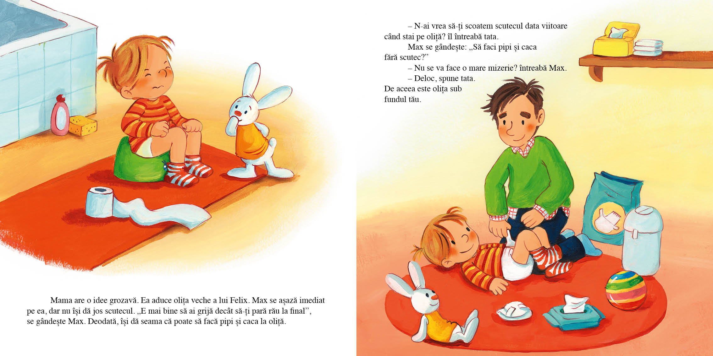 O carte ilustrată care îi sprijină pe cei mici într-una dintre primele provocări importante din viața lor: renunțarea la scutec și folosirea toaletei.