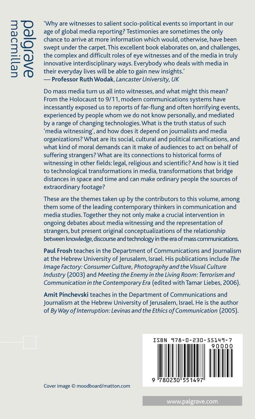 From the Holocaust to 9/11, modern communications systems have incessantly exposed us to reports of distant and horrifying events, experienced by strangers, and brought to us through media technologies. In this book leading scholars explore key questions concerning the truth status and broader implications of 'media witnessing'.