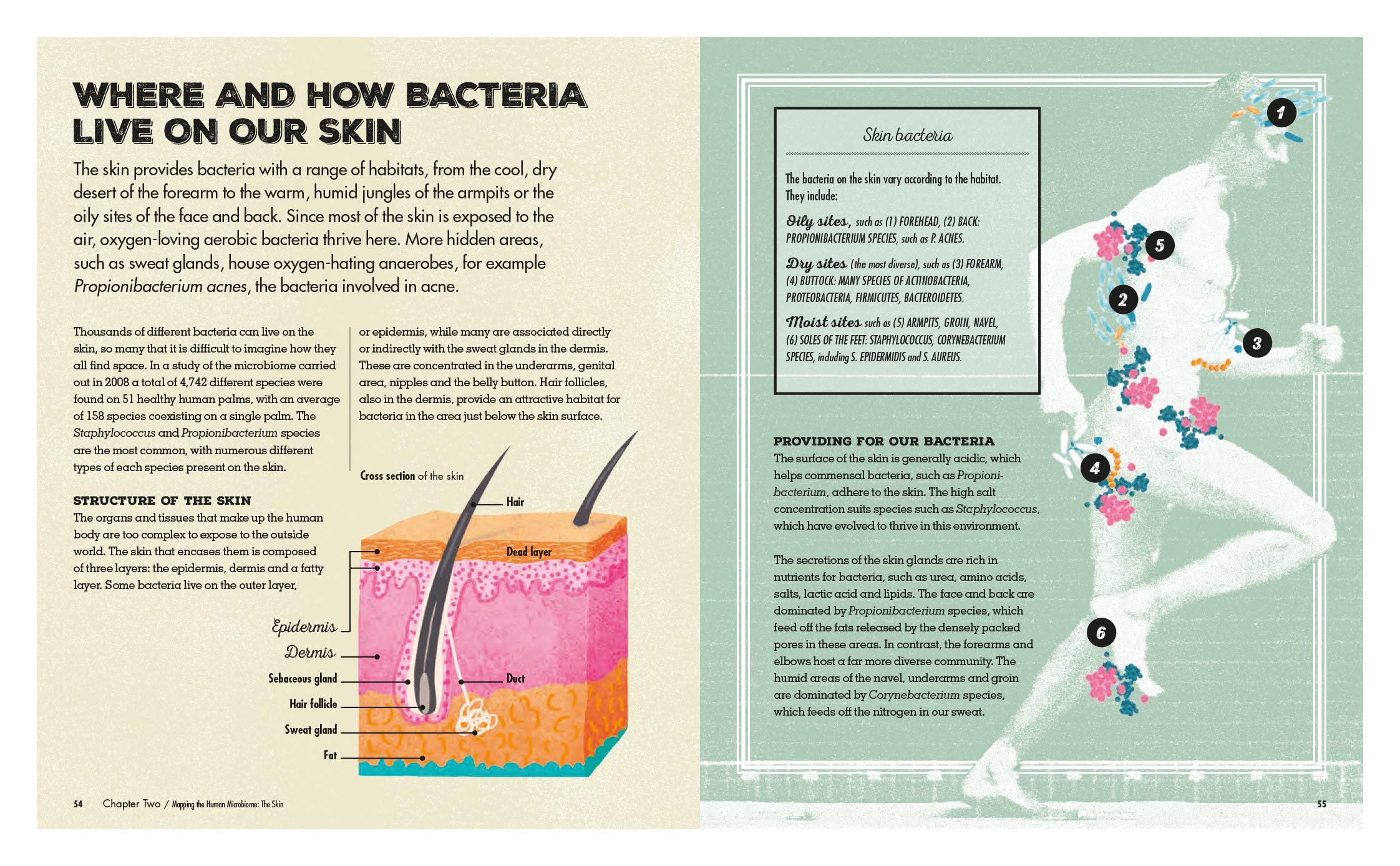 - Explores the different bacteria that live on and in various parts of your body (not just in the gut)