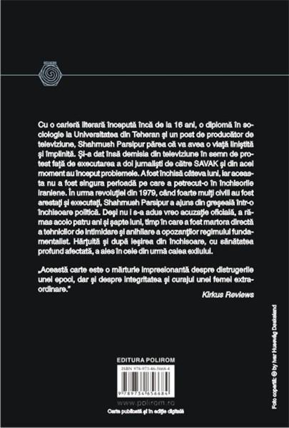 Cu o cariera literara inceputa inca de la 16 ani, o diploma in sociologie la Universitatea din Teheran si un post de producator de televiziune, Shahrnush Parsipur parea ca va avea o viata linistita si implinita. Si-a dat insa demisia din televiziune in semn de protest fata de executarea a doi jurnalisti de catre SAVAK si din acel moment au inceput problemele. A fost inchisa citeva luni, iar aceasta nu a fost singura perioada pe care a petrecut-o in inchisorile iraniene. In urma revolutiei din 1979, cind foarte multi civili au fost arestati si executati, Shahrnush Parsipur a ajuns din greseala intr-o inchisoare politica. Desi nu i s-a adus vreo acuzatie oficiala, a ramas acolo patru ani si sapte luni, timp in care a fost martora directa a tehnicilor de intimidare si anihilare a opozantilor regimului fundamentalist. Hartuita si dupa iesirea din inchisoare, cu sanatatea profund afectata, a ales in cele din urma calea exilului.