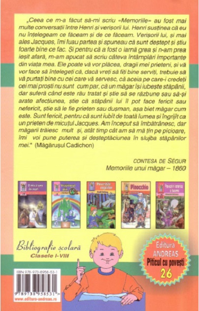 Sunt fericit, pentru ca sunt iubit de toata lumea si îngrijit ca un prieten de micutul Jacques. Am început sa îmbatrânesc, dar magarii traiesc mult si atât timp cât am sa ma tin pe picioare, am sa-mi pun puterea si desteptaciunea în slujba stapânilor mei."