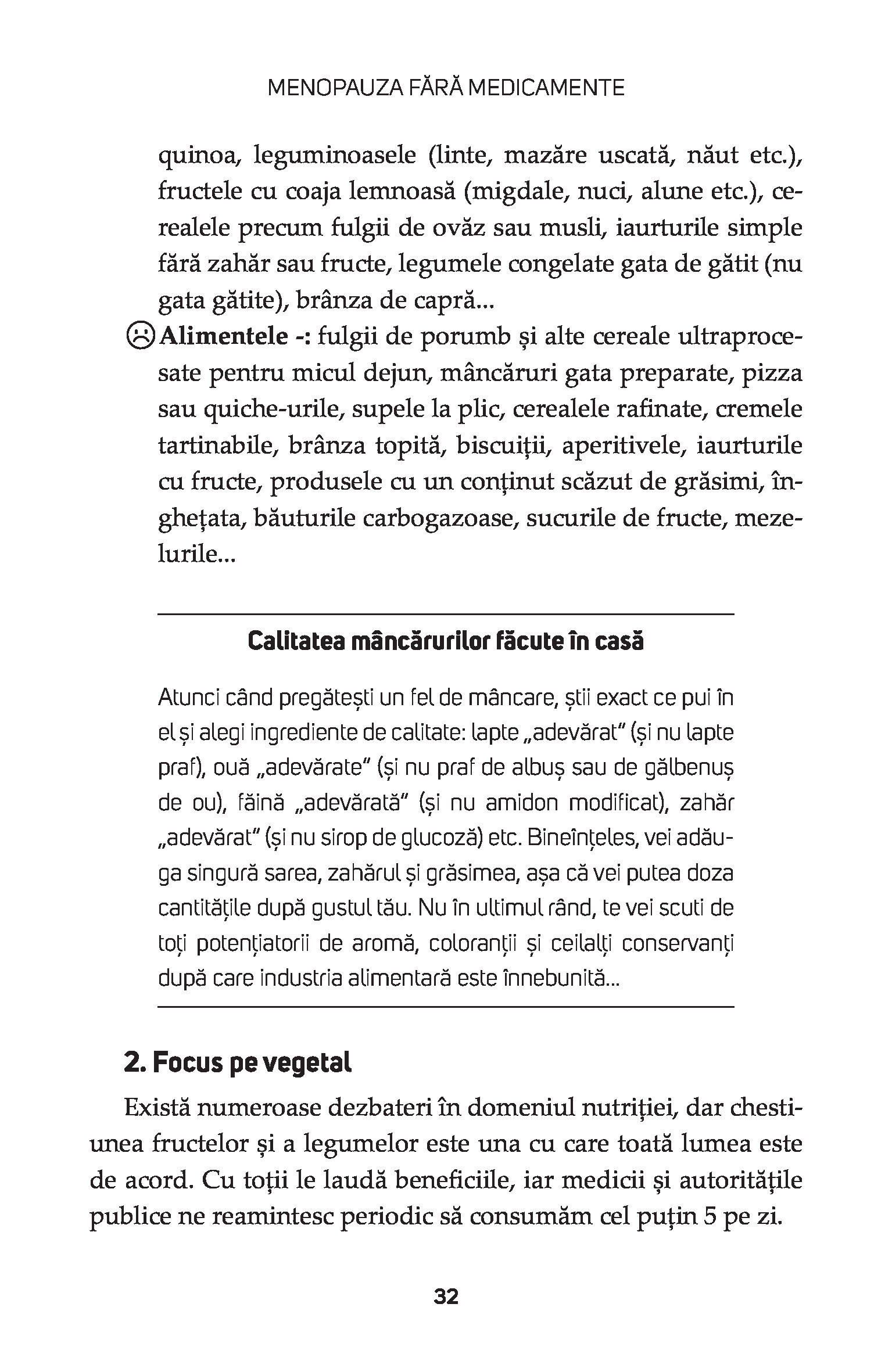 Menopauza nu este o boală, ci o etapă firească instalată în viața tuturor femeilor spre sfârșitul celui de-al patrulea deceniu de viață, marcată însă de o mulțime de tabuuri, dezinformare și chiar rușine. Îți propunem o carte revoluționară, pentru toate femeile care, dintr-odată, nu mai înțeleg ce se întâmplă cu propriul corp. O carte adresată tuturor femeilor începând cu vârsta de 45 de ani și care pune accentul pe creșterea calității vieții, arătându-ne nu numai cum să depășim fără medicamente dezechilibrele fizice și psihoemoționale, ci și că sfârșitul perioadei fertile nu înseamnă nicidecum dispariția feminității sau a sexualității.