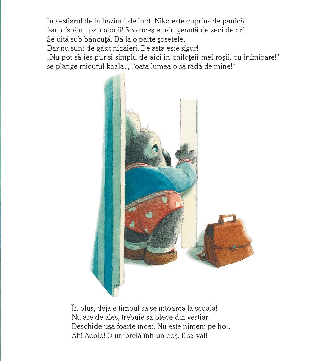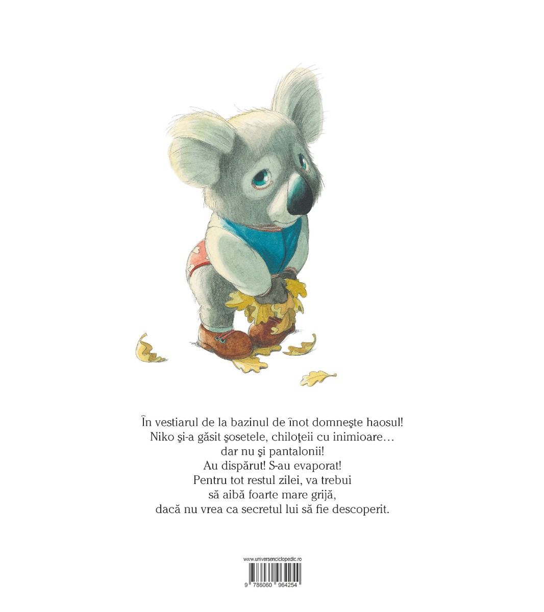 În vestiarul de la bazinul de înot domneşte haosul! Niko şi-a găsit şosetele, chiloţeii cu inimioare… dar nu şi pantalonii! Au dispărut! S-au evaporat! Pentru tot restul zilei, va trebui să aibă foarte mare grijă, dacă nu vrea ca secretul lui să fie descoperit.