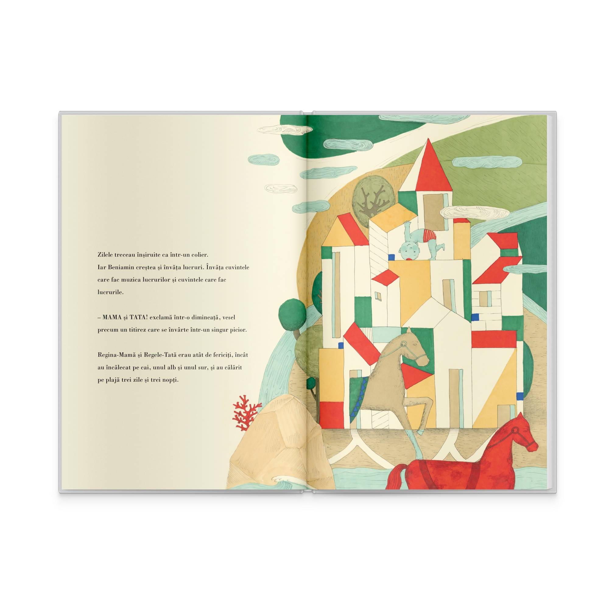 „Mică poveste” reiterează feluritele moduri în care poți fi fericit, având ca reper atât perspectiva copilului, cât și pe cea a adultului/părintelui. Odată cu Beniamin, Regele-Tată și Regina-Mamă redescoperă spectacolul lumii și frumusețea vieții. Fericirea, mirarea și lecțiile învățate de prinț îi umplu de sens pe aceștia, devenindu-le noul filtru de receptare al realității. Mai mult decât atât, întreaga împărăție/lume asistă la măreția copilului – la creșterea și devenirea lui –sărbătorind-o. În mod subtil, narațiunea amintește și de firescul periplului existențial al copilului. Încărcate de emoția părinților și marcând plecarea prințului, cuvintele de final râmân încremenite în timp pentru a lăsa loc viselor să se înalțe către cer. Și pentru a-i permite lui Beniamin să-și descopere propriul regat– dorind, căutând și așteptând. În fond, ce-i face pe Regele-Tată și pe Regina-Mamă fericiți? Fericirea fiului lor!