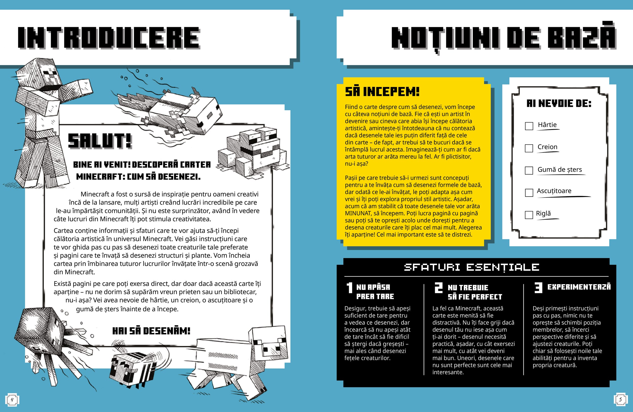 Recomandată copiilor și pasionaților de Minecraft cu vârsta de peste 8 ani, cartea este perfectă pentru cei care doresc să-și îmbunătățească tehnicile de desen și să dea viață universului Minecraft pe hârtie.