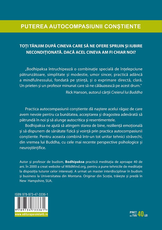 Bodhipaksa ne ajută să atingem starea de bine, reziliență emoțională şi să dispunem de sănătate fizică și voință prin practica autocompasiunii conştiente. Pentru aceasta combină într-un tot unitar tehnici străvechi, din vremea lui Buddha, cu cele mai recente perspective psihologice şi neuroştiinţifice.