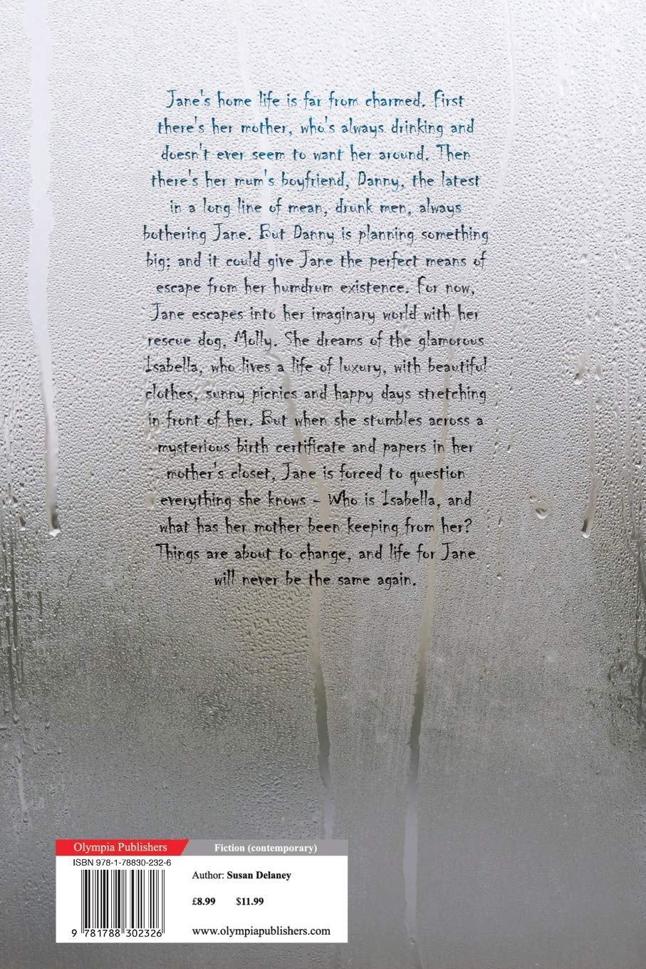 Jane's home life is far from charmed. First there's her mother, who's always drinking and doesn't ever seem to want her around. Then there's her mum's boyfriend, Danny, the latest in a long line of mean, drunk men, always bothering Jane. But Danny is planning something big; and it could give Jane the perfect means of escape from her humdrum existence. For now, Jane escapes into her imaginary world with her rescue dog, Molly. She dreams of the glamorous Isabella, who lives a life of luxury, with beautiful clothes, sunny picnics and happy days stretching in front of her. But when she stumbles across a mysterious birth certificate and papers in her mother's closet, Jane is forced to question everything she knows - Who is Isabella, and what has her mother been keeping from her? Things are about to change, and life for Jane will never be the same again.