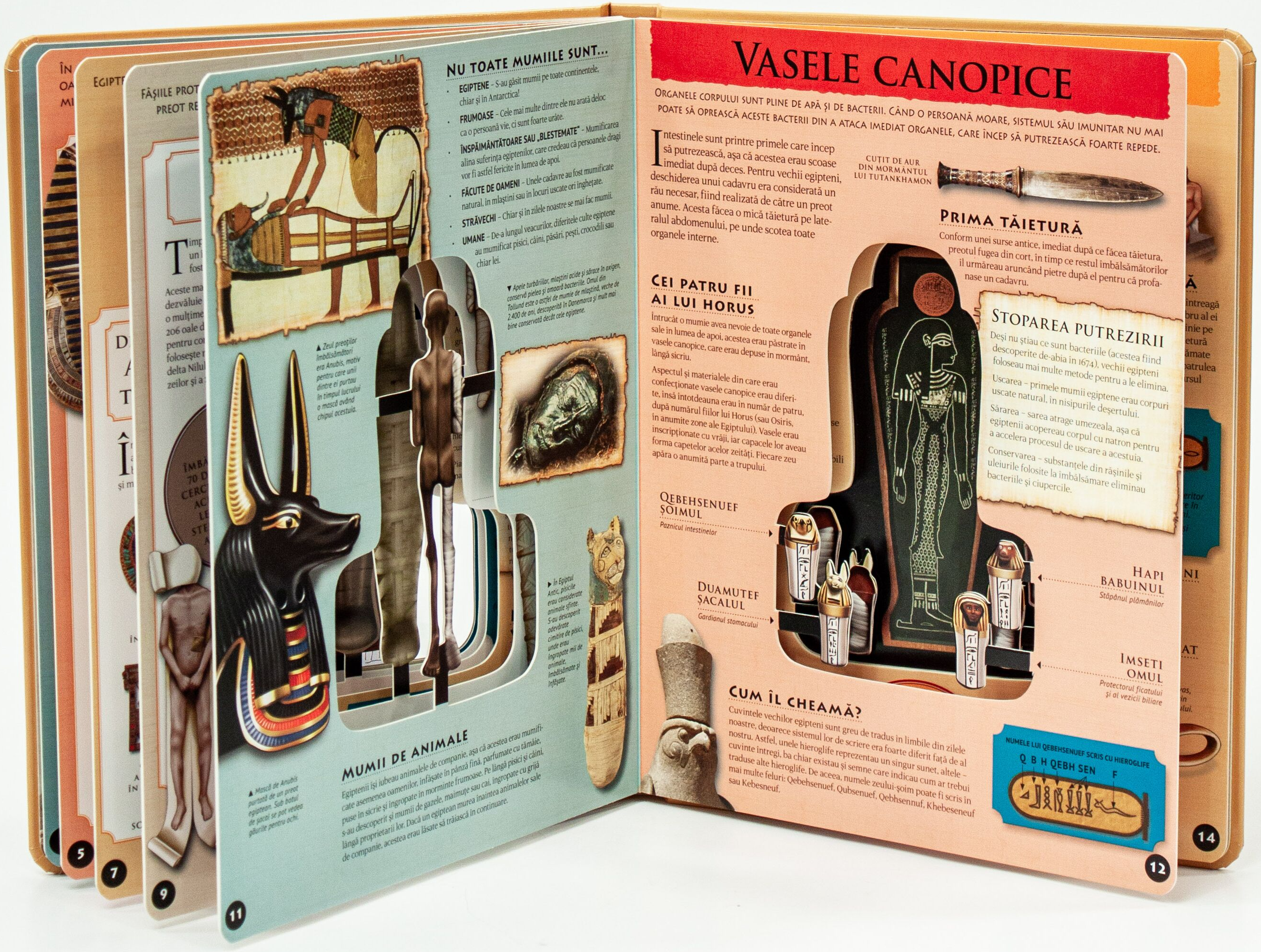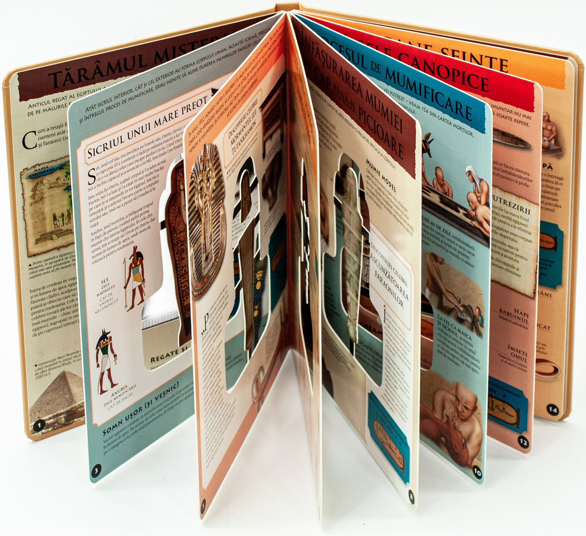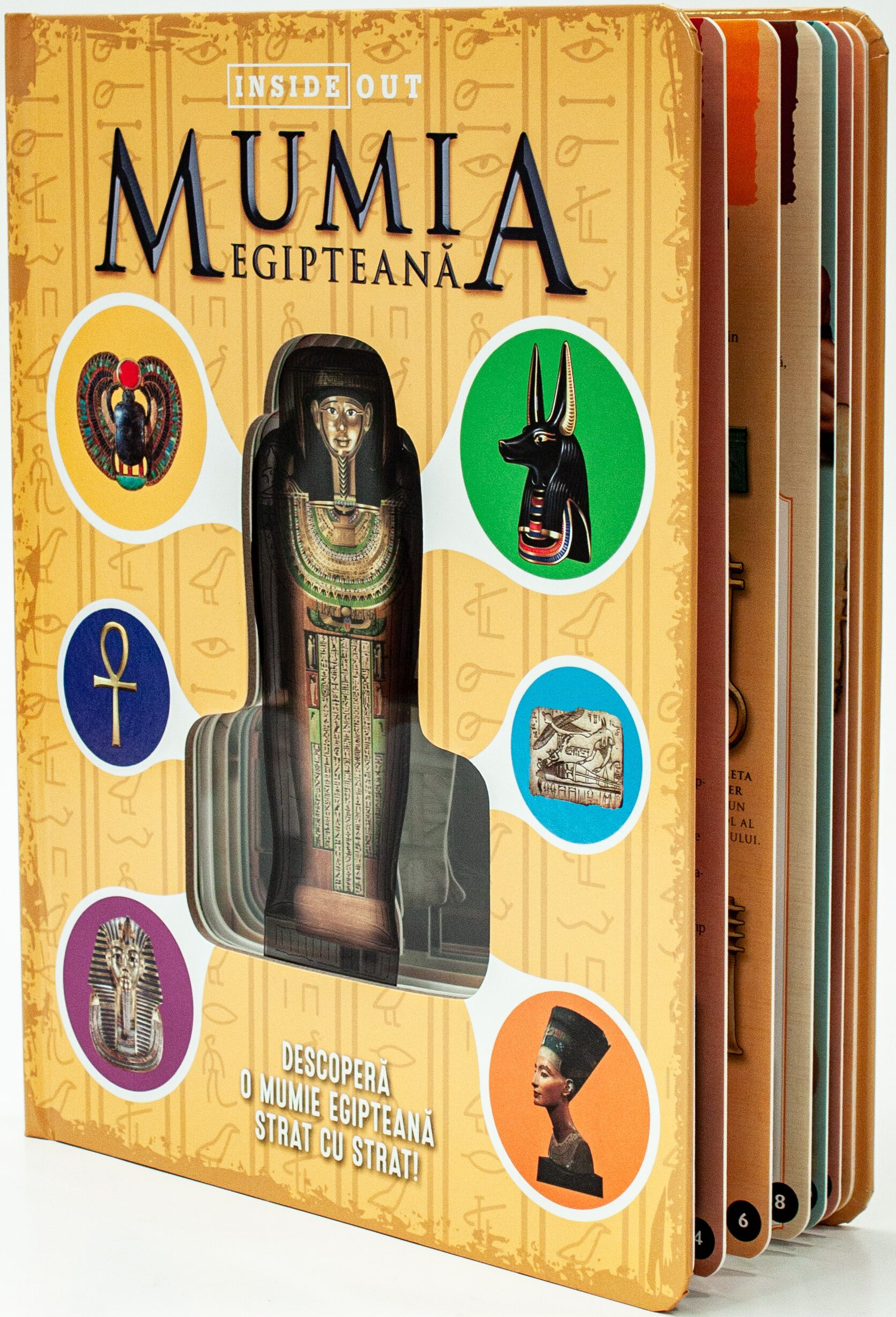 Descoperă pas cu pas misterele mumificării! Află o mulțime de lucruri interesante despre acest proces complicat și migălos, dar și despre importanța acestei practici în Egiptul Antic, una dintre cele mai importante civilizații din istoria lumii! Modelul 3D îți va oferi o perspectivă clară asupra fiecărei etape a procesului de mumificare, în timp ce ilustrațiile și descrierile detaliate te vor ajuta să înțelegi mai bine procedurile și rolul obiectelor indispensabile acestei ceremonii.