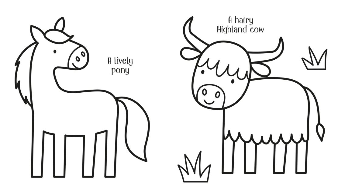 This first colouring book is packed with charming illustrations of all kinds of creatures, from zoo animals and pets to birds and bugs. With over 90 bold, simple outlines to fill in, it'll provide hours of entertainment while helping young children develop mark-making and pen-control skills.