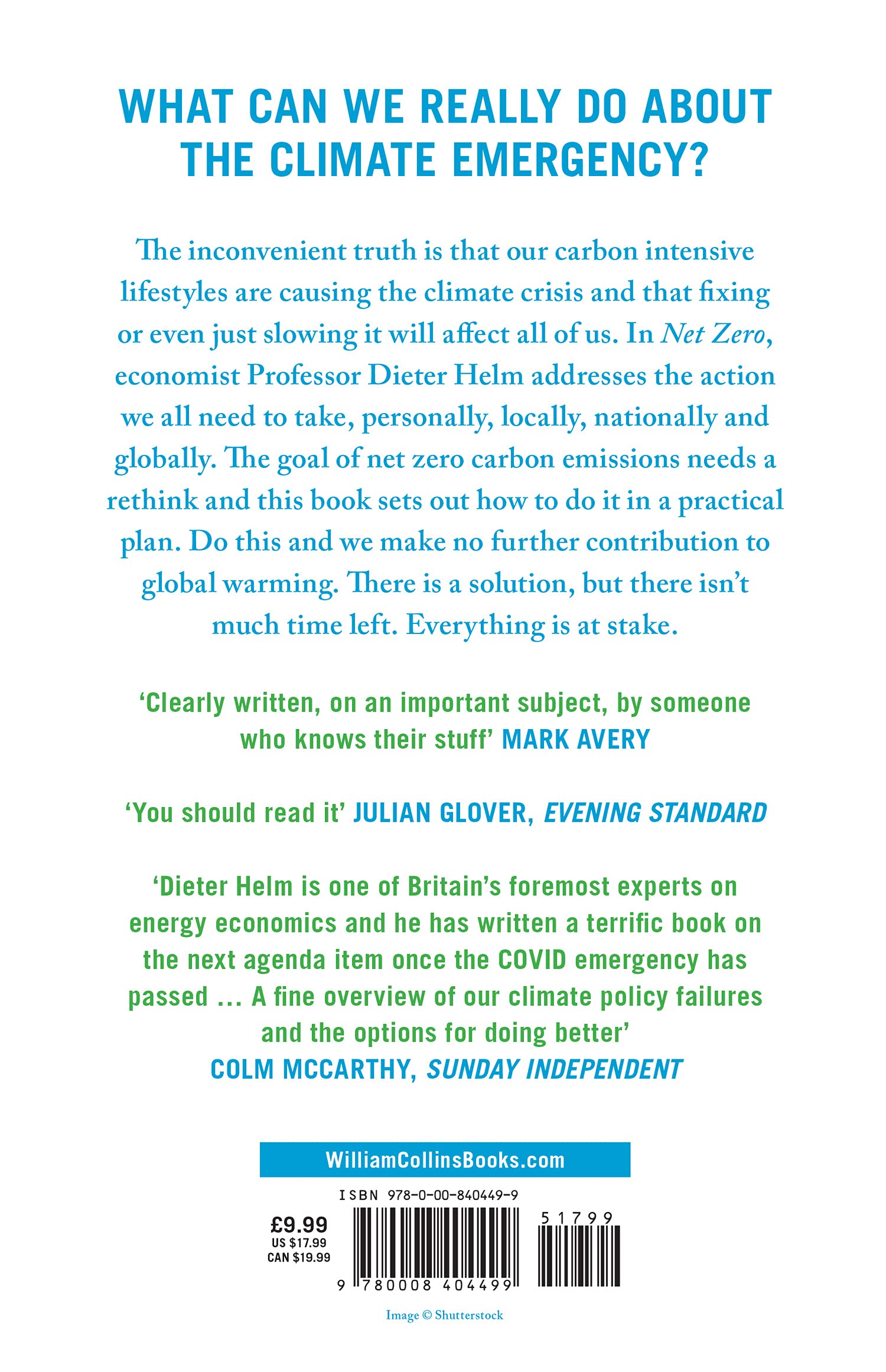 Net Zero is Professor Dieter Helm's measured, balanced view of how we stop causing climate change by adopting a net zero strategy of reducing carbon emissions and increasing carbon absorption. It is a rational look at why the past 30 years efforts has failed and why and how the next 30 years can succeed. It is a vital book for anyone who hears the clamour of Extinction Rebellion and other ecological activists, but wonders what they can actually do.