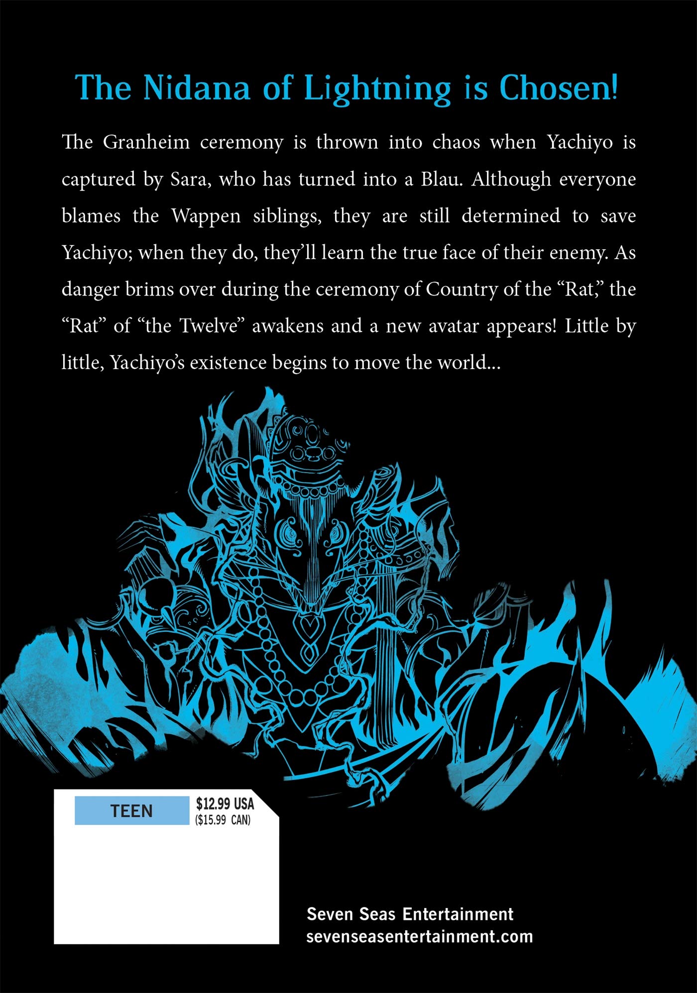 The Granheim ceremony is thrown into chaos when Yachiyo is captured by Sara, who has turned into a Blau. Although everyone blames the Wappen siblings, they are still determined to save Yachiyo; when they do, they’ll learn the true face of their enemy. As danger brims over during the ceremony of Country of the “Rat,” the “Rat” of “the Twelve” awakens and a new avatar appears! Little by little, Yachiyo’s existence begins to move the world…