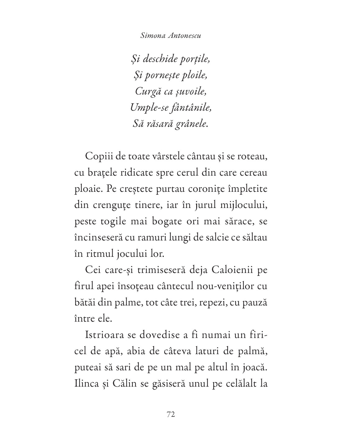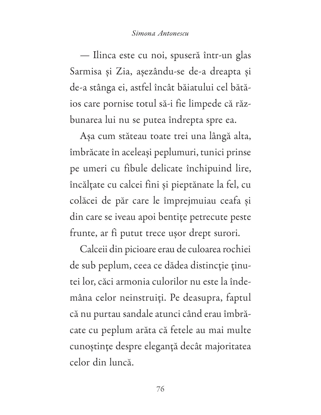 Rostind descântecul ciudat pe care l-au învăţat de la bunicul Zosim, Ilinca și Călin se întorc din nou în timp, de astă dată în anul 470, când Histria era o cetate înfloritoare la Pontul Euxin. Acolo se împrietenesc cu micul hamal Decibalus, dar și cu gemenele Zia și Sarmisa, fiicele cărturarului Aethicus Donares, care a făcut înconjurul lumii și a scris faimoasa lucrare Cosmografia. Pe când Ilinca vizitează biblioteca nobilului, Călin îl însoţește pe Decibalus pe străduţele întortocheate ale cetăţii, curios să afle mai multe despre un obicei străvechi, Caloianul. Cei doi gemeni descoperă lucruri care mai de care mai fascinante despre trecut, despre zeul Zamolxe și Cavalerul Trac, dar și despre creștinism, și se întâlnesc cu fel de fel de personaje misterioase. Însă îi mai așteaptă o mulţime de peripeţii în marea lor aventură…