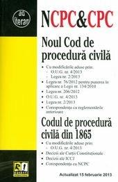 Lucrarea de fata ofera o prezentare comparativa, pe articole, a noului Cod de procedura civila, in paralel cu reglementarile anterioare in primul rand vechiul Cod de procedura civila, de la 1865, dar si alte acte normative ale caror dispozitii au fost preluate, cu sau fara modificari, in noua reglementare (cum ar fi Codul civil de la 1864 partea referitoare la probe, Codul comercial, Legea nr. 105/1992 privind raporturile de drept international privat, O.G. nr. 5/2001 privind somatia de plata sau O.U.G. nr. 119/2007 privind ordonanta de plata acestea urmand a fi abrogate de la 15 februarie 2013).