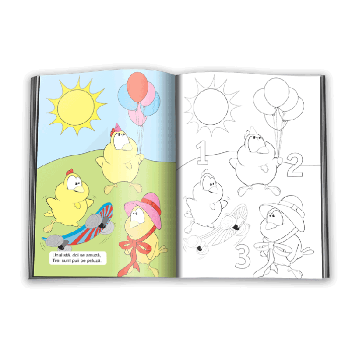 Pe lângă paginile de colorat, cartea conține și pagini cu activități care dezvoltă gândirea logică, perspicacitatea și atenția.
