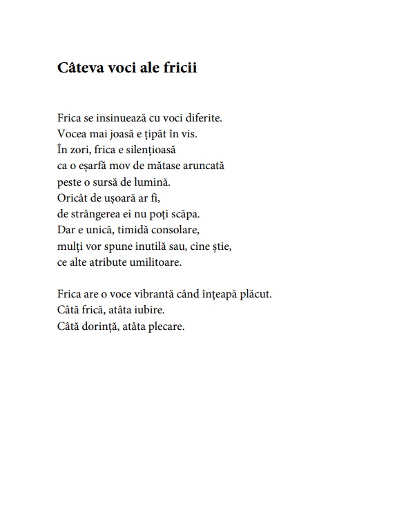 E o lirică participativă cea a Violetei, în care cititorul e invitat să pună de la el, să schimbe, să o cotească într-o direcție ori în alta, să se întoarcă împotrivă, să nege. Contextul ce ține la foc mic, dar viu, dragostea, are mai mulți vectori, între care boala, frica, absența, credința, moartea. Atunci când converg, acidul arde vârfurile degetelor.