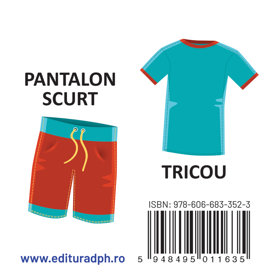 Prin imagini clare și denumiri simple, îi ajută pe copii să recunoască și să numească articolele de îmbrăcăminte pe care le folosesc zi de zi, sprijinind dezvoltarea vocabularului de bază.