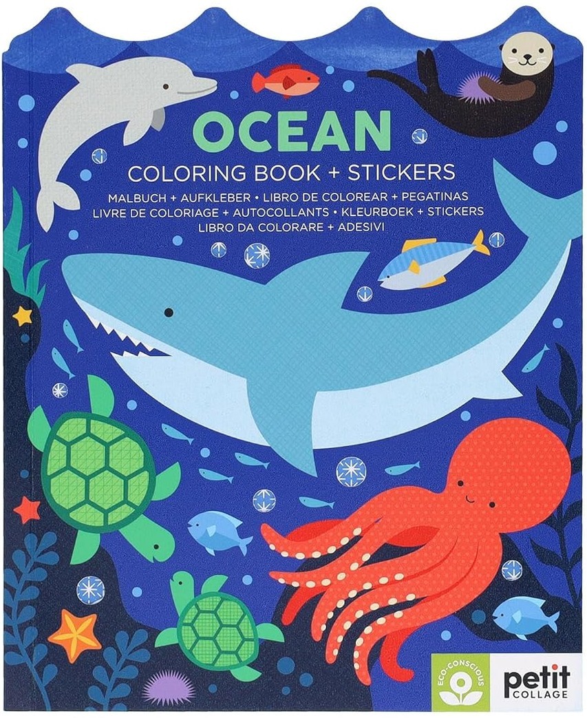 KIDS' COLORING BOOK – Encourage creativity, imagination, and exploration with the Ocean Coloring Book and Stickers from Petit Collage. Kids can create on-the-move scenes by coloring in the bright pages of line illustrations.