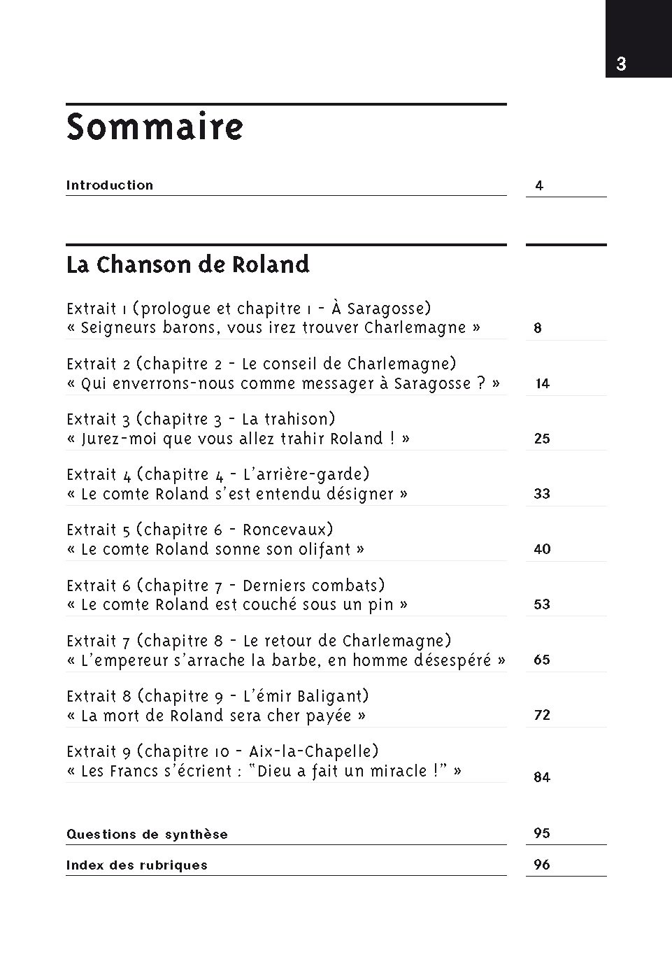 S'inspirant de faits historiques remontant au VIIIe siècle, la Chanson de Roland raconte comment Roland, neveu et baron de Charlemagne, a péri au cours d'une embuscade tendue par les Sarrasins alors qu'il passait, avec son armée, le col de Roncevaux, dans les Pyrénées.Trahison, orgueil, courage et vengeance sont au coeur de cette célèbre chanson de geste écrite à la fin du XIe siècle par un poète anonyme et proposée ici dans une adaptation d'Anne-Marie Cadot-Colin.L'édition Oeuvres & thèmesType : Oeuvre en extraitsL'appareil pédagogique comprend :- des repères sur le contexte et les genres,- un questionnaire pour chaque texte, avec des "petites leçons" sur les notions en jeu,- des textes échos, pour construire une culture littéraire.