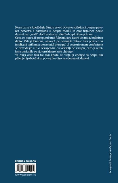 Noua carte a Anei Maria Sandu este o poveste sofisticata despre puterea perversa a naratiunii si despre modul in care fictiunea poate deveni mai „reala” decit realitatea, alterind-o pina la epuizare.