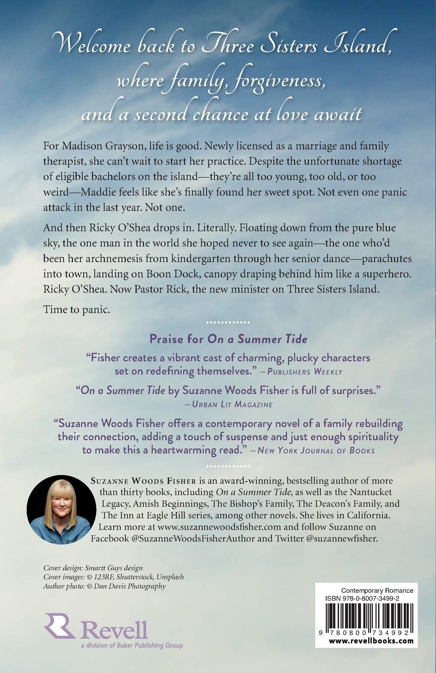 For Madison Grayson, life is good. Newly licensed as a marriage and family therapist, she can't wait to start her practice. Despite the unfortunate shortage of eligible bachelors on the island--they're all too young, too old, or too weird--Maddie feels like she's finally found her sweet spot. Not even one panic attack in the last year. Not one. And then Ricky O'Shea drops in. Literally. Floating down from the pure blue sky, the one man in the world she hoped never to see again--the one who'd been her archnemesis from kindergarten through her senior dance--parachutes into town, landing on Boon Dock, canopy draping behind him like a superhero. Ricky O'Shea. Now Pastor Rick, the new minister on Three Sisters Island. Time to panic. With wit and a bit of whimsy, bestselling author Suzanne Woods Fisher invites you back to Three Sisters Island where family, forgiveness, and a second chance at love await.